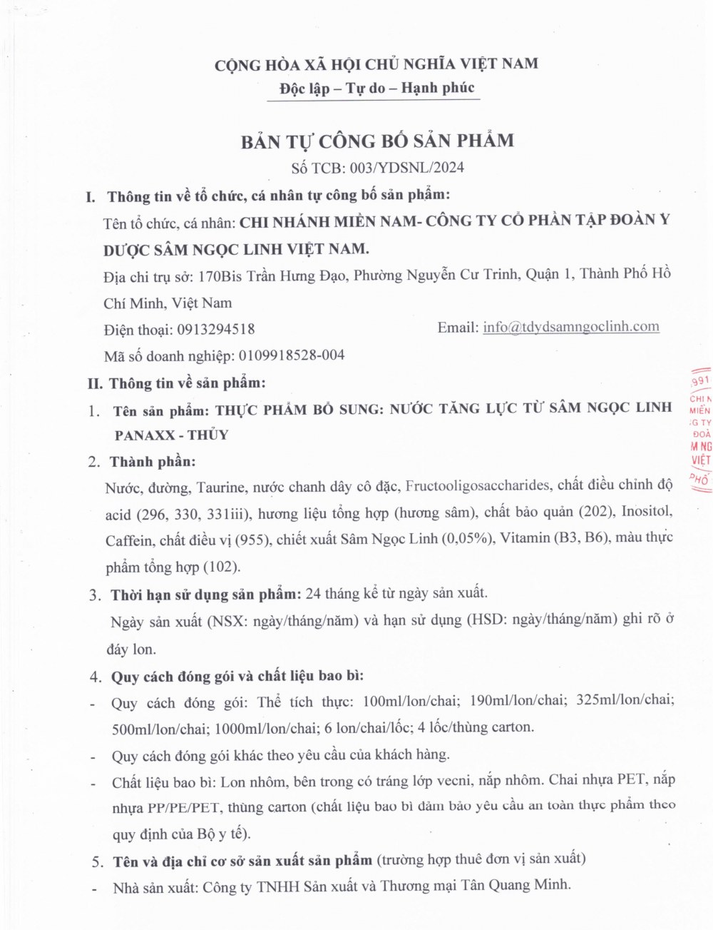Bộ Giấy Tờ - Chứng Nhận Của Công Ty Tập Đoàn Y Dược Sâm Ngọc Linh Việt Nam 0