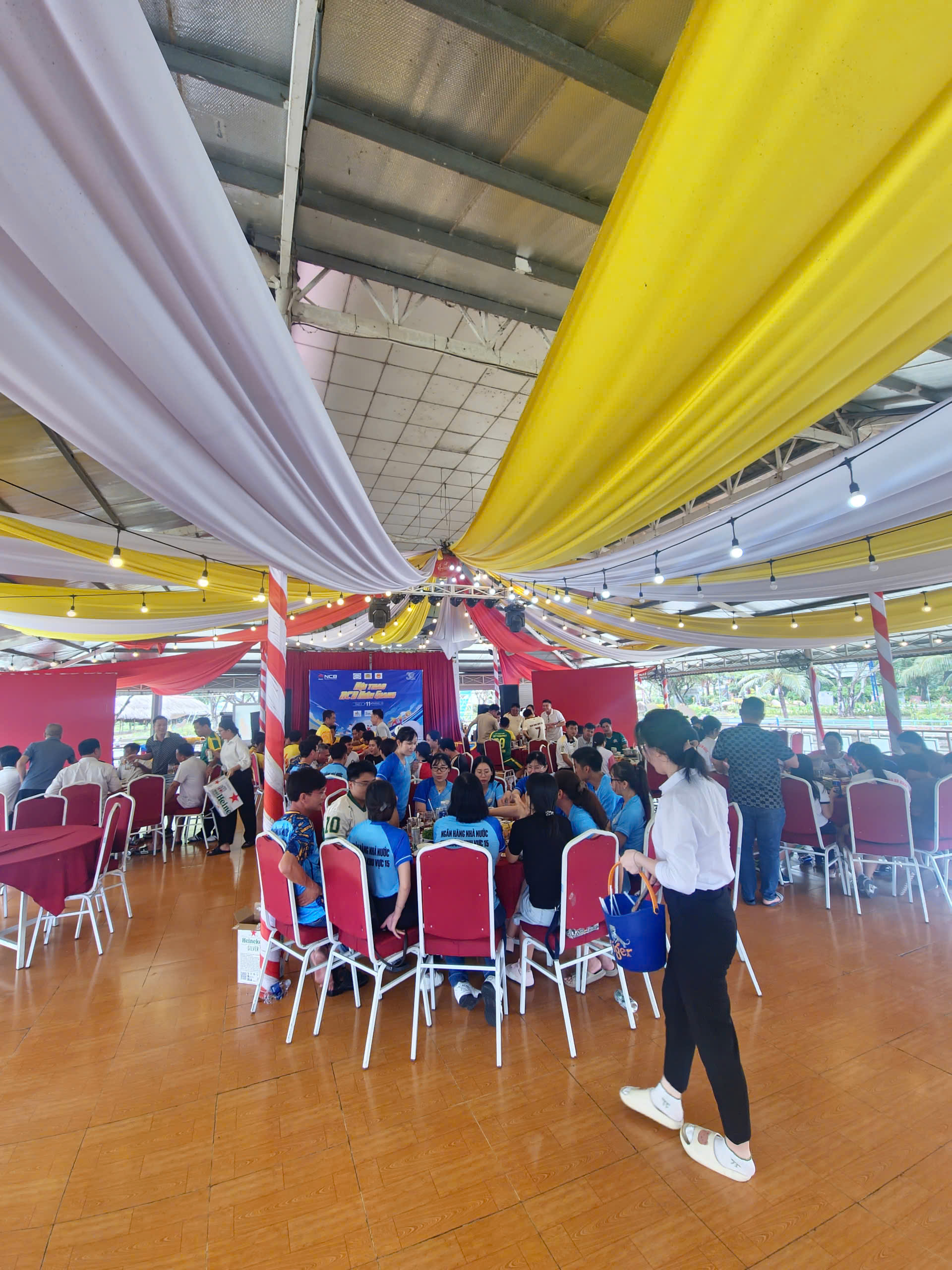 Ngay từ buổi sáng, khu vực hội trường và sân thể thao tại Khu du lịch Phú Điền đã trở nên sôi động với sắc màu tươi sáng của cờ hoa, phông nền và trang trí sự kiện. Toàn bộ khu vực được thiết kế, sắp xếp chuyên nghiệp – từ khâu đón tiếp, sân khấu, âm thanh, ánh sáng cho đến khu vực thi đấu và giao lưu.
