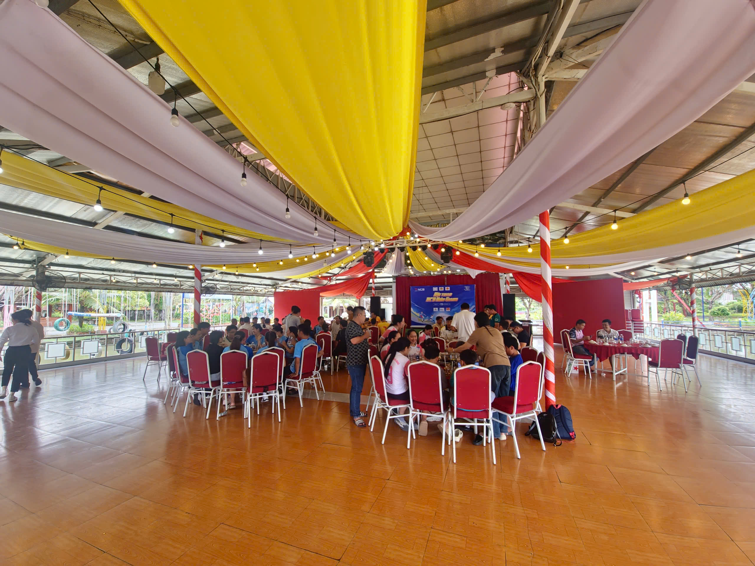 Những dải lụa đỏ, vàng và trắng được giăng khắp không gian tạo cảm giác vừa trẻ trung, vừa trang trọng – mang đậm phong cách tổ chức sự kiện của Phú Điền. Từng chi tiết nhỏ đều thể hiện sự chỉn chu và tâm huyết, giúp chương trình diễn ra suôn sẻ, ấn tượng và tràn đầy năng lượng.