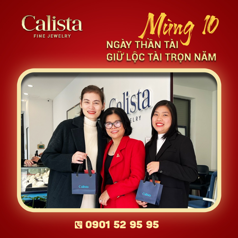 Trang sức Calista đã có bề dày kinh nghiệm và hoạt động trong ngành trang sức của Việt Nam. Cùng với sự phát triển máy móc hiện đại, đội ngũ thợ chuyên nghiệp và nhân viên có tính chuyên môn, thẩm mỹ cao, Calista đã và đang khẳng định thương hiệu, uy tín và luôn đặt chất lượng sản phẩm cũng như ý kiến của khách hàng lên hàng đầu.