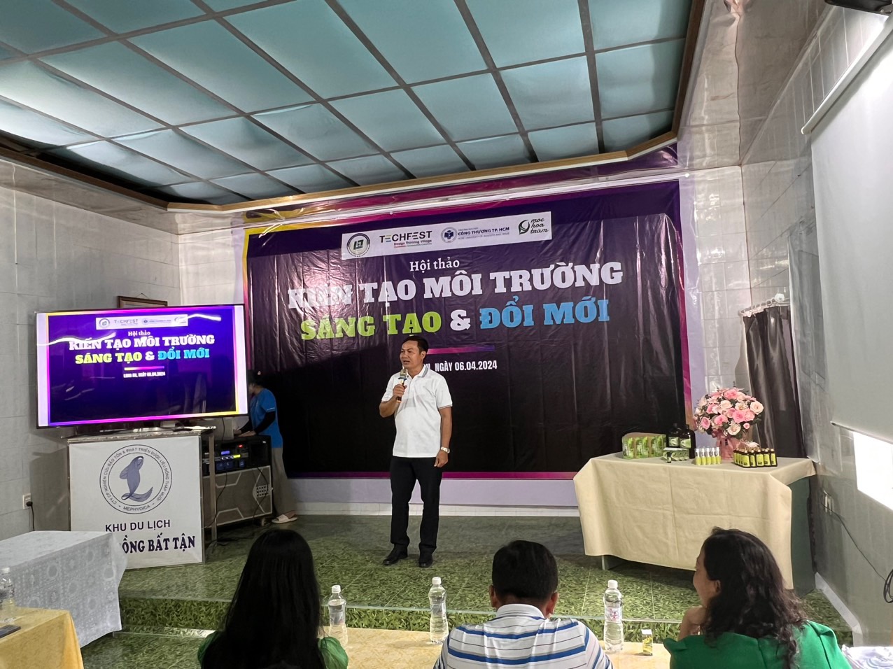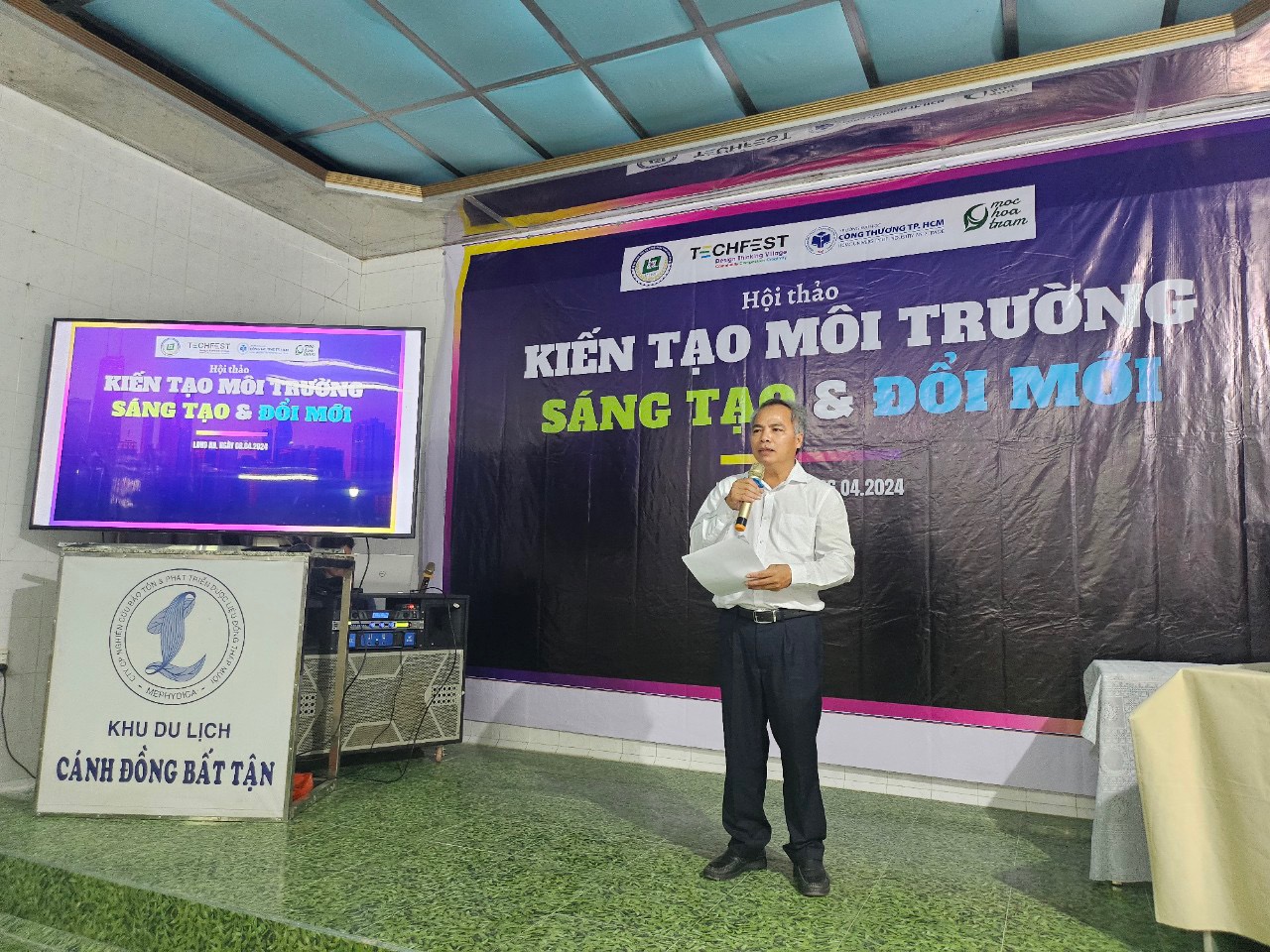 Phát biểu khai mạc tại sự kiện, TS. Thái Doãn Thanh – P. Hiệu trưởng Trường Đại học Công Thương TP. HCM (HUIT) chia sẻ: bên cạnh công tác giáo dục, hoạt động hỗ trợ cộng đồng là một trong những hoạt động quan trọng của nhà trường. Trường đã tập trung trong việc kết nối doanh nghiệp, thị trường, phát triển hệ sinh thái, đi sâu vào các dự án thực tiễn các địa phương.