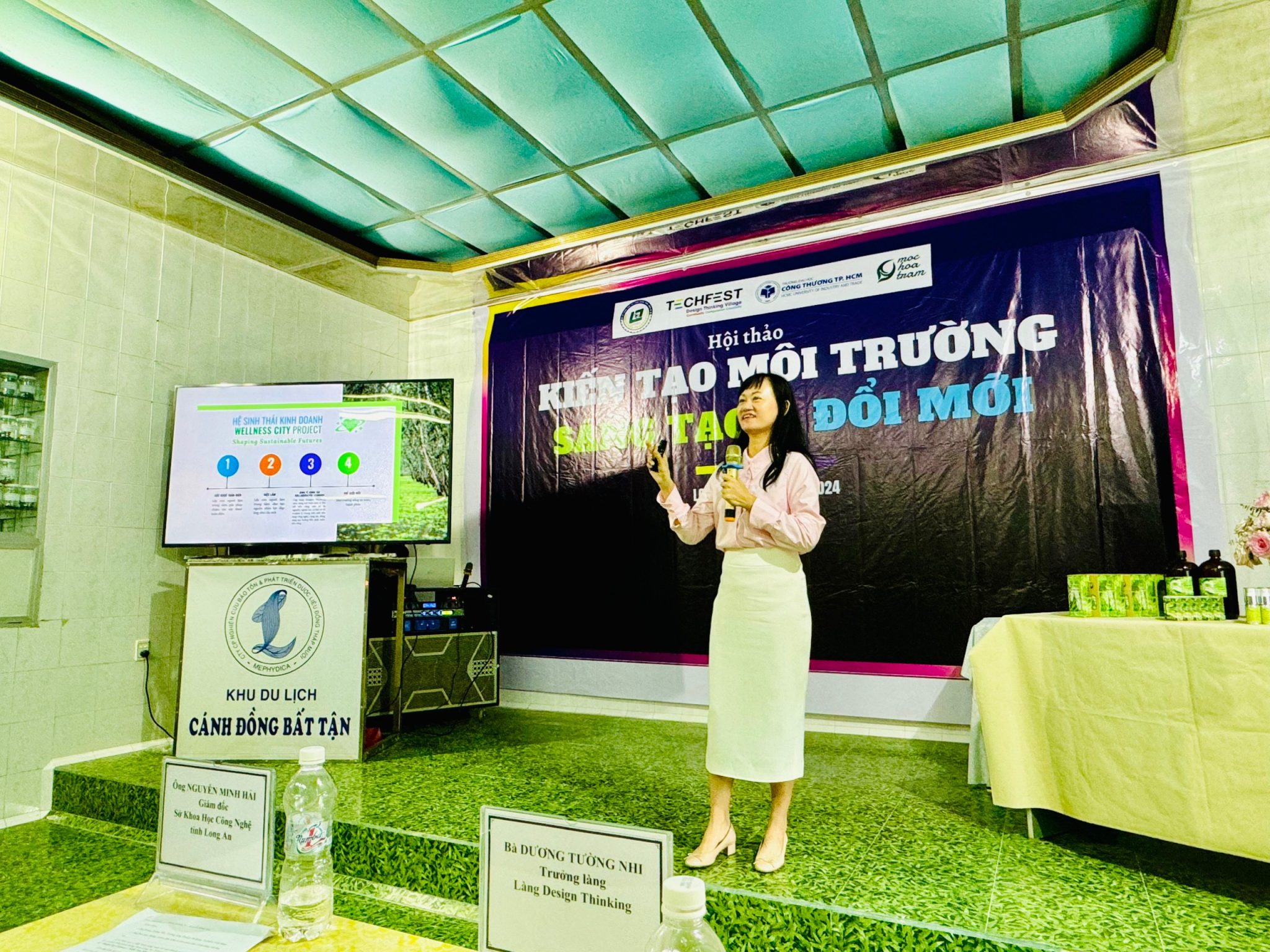 Trong buổi Hội thảo Kết nối tri thức sáng tạo và đổi mới vào chiều ngày 6/4/2024, Bà Dương Tường Nhi – Trưởng Làng Design Thinking đã chia sẻ Dự án Wellness City – Hệ sinh thái kinh doanh – Ứng dụng Design Thinking và Dự án Liên Minh Du lịch Nông nghệ Bền Vững. Cả hai dự án hướng tới đổi mới sáng tạo trong lĩnh vực du lịch, nông nghiệp, môi trường, giáo dục đào tạo, hướng đến mục tiêu phát triển bền vững, tạo tác động xã hội, mang đến những giá trị và trải nghiệm mới cho cuộc sống tươi đẹp hơn.