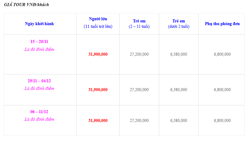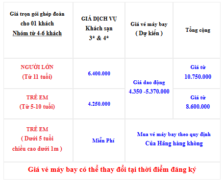 - Tiền TIP cho hướng dẫn viên và tài xế địa phương (mức đề nghị 870.000/ khách /tour).