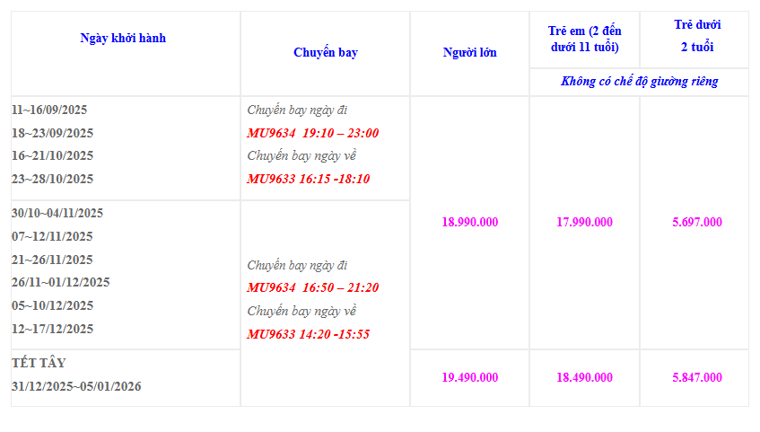- Thông tin chuyến bay: (có thể thay đổi tùy theo thời điểm xuất vé).