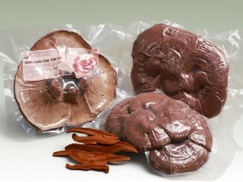 At Tà Đảnh Agricultural Cooperative, our Reishi mushrooms are lovingly cultivated in harmony with nature—benefiting from An Giang’s clean air, fertile soil, and ideal climate. The result is a large, robust mushroom cap with a distinct aroma, natural color, and potent bioactive compounds.