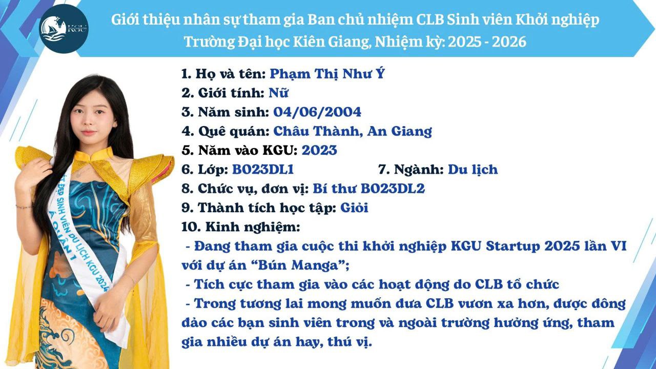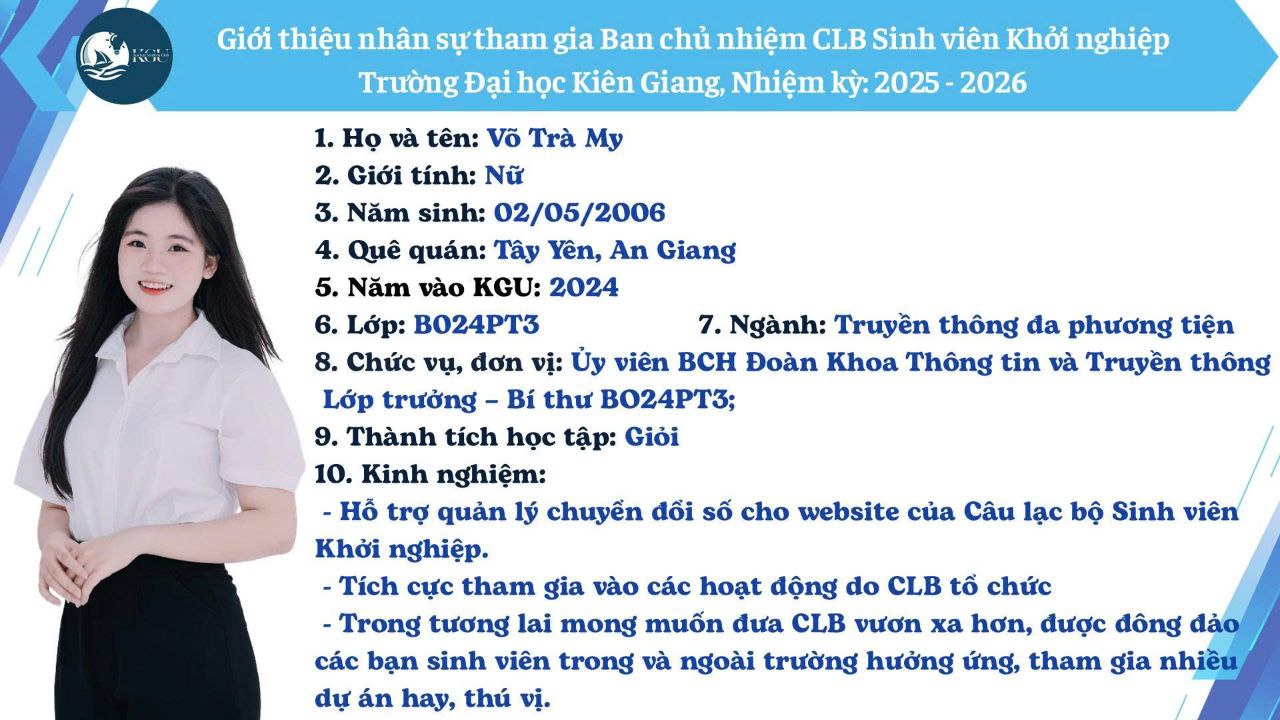 Trong chương trình, đại diện Phòng Công tác Sinh viên và Khởi nghiệp ghi nhận những thành tích nổi bật mà Câu lạc bộ đã đạt được trong nhiệm kỳ vừa qua, đồng thời gửi lời chúc mừng đến Ban Chủ nhiệm mới được bầu chọn một cách minh bạch, công khai. Ban Chủ nhiệm nhiệm kỳ mới gồm: Nguyễn Quỳnh Nhi, Nguyễn Thái Học, Võ Trà My, Nguyễn Thanh Đạt, Nguyễn Nhật Hào, Lê Thị Hoàn Đẹp, Phạm Thị Như Ý đã chính thức ra mắt, thể hiện tinh thần trách nhiệm và quyết tâm tiếp tục đẩy mạnh các hoạt động đổi mới sáng tạo, trang bị kỹ năng thực tiễn, đồng thời phát triển một sân chơi thiết thực cho sinh viên yêu thích khởi nghiệp.