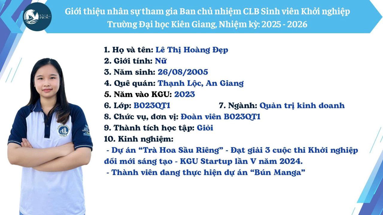 Sự kiện khép lại với khoảnh khắc ấm áp chúc mừng sinh nhật lần thứ 03 của CLB, đánh dấu chặng đường trưởng thành đáng tự hào. Việc đồng hành cùng chương trình tiếp tục thể hiện định hướng kết nối – hỗ trợ – phát triển tài năng trẻ của Hiền Nhân Group. Chúc CLB Sinh viên Khởi nghiệp KGU ngày càng phát triển vững mạnh, trở thành nguồn cảm hứng cho thế hệ sinh viên Kiên Giang trên hành trình kiến tạo tri thức và khởi nghiệp sáng tạo.