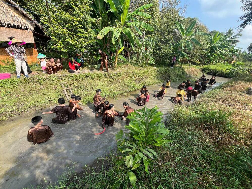 Miền Tây nổi tiếng với sông ngòi chằng chịt, vì thế cuộc sống của người dân nơi đây gắn với sông nước từ chèo xuồng, tát mương, bắt cá. Đến đây, du khách có thể tham gia các hoạt động thú vị như mặc áo bà ba, lội mương, tự tay bắt cá trải nghiệm cuộc sống chân chất, bình dị của người dân.