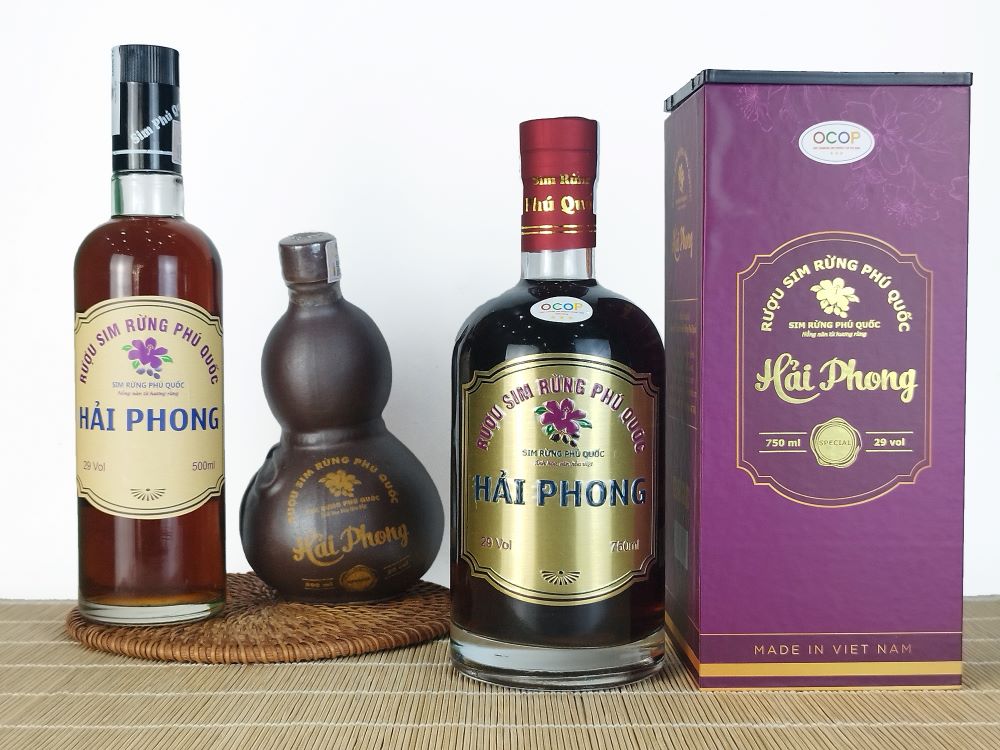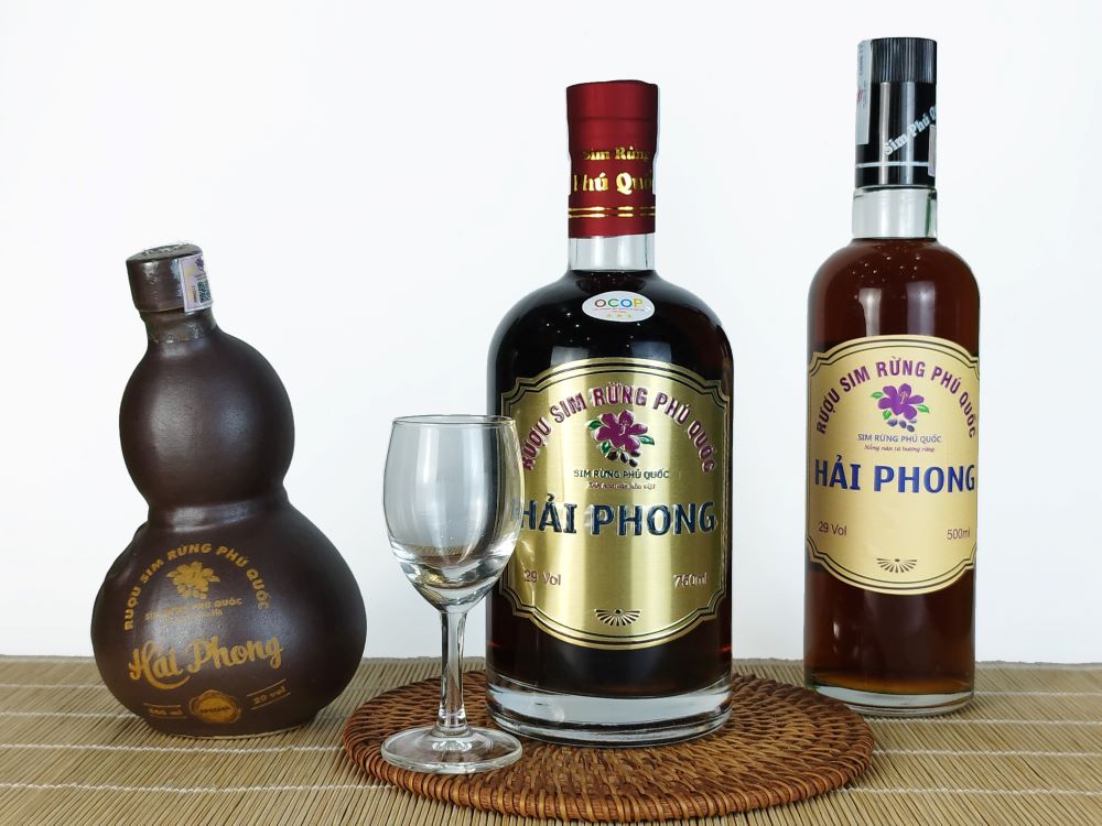 Phú Quốc – Kiên Giang được thiên nhiên ban tặng cho nhiều rừng sim, vì thế mà ở Đảo Ngọc, con người được cơ hội nuôi trồng và sản xuất các sản phẩm về cây sim rừng trong đó có Rượu sim rừng Phú Quốc Hải Phong, với quy trình sản xuất nghiêm ngặt và kỹ lưỡng, chất lượng của thương hiệu được đảm bảo với hương vị của rượu vừa thơm ngon, vừa độc đáo, từ thanh ngọt đến chan chát mang đến cho thực khách khi nếm thử một trải nghiệm vị giác khó quên.
