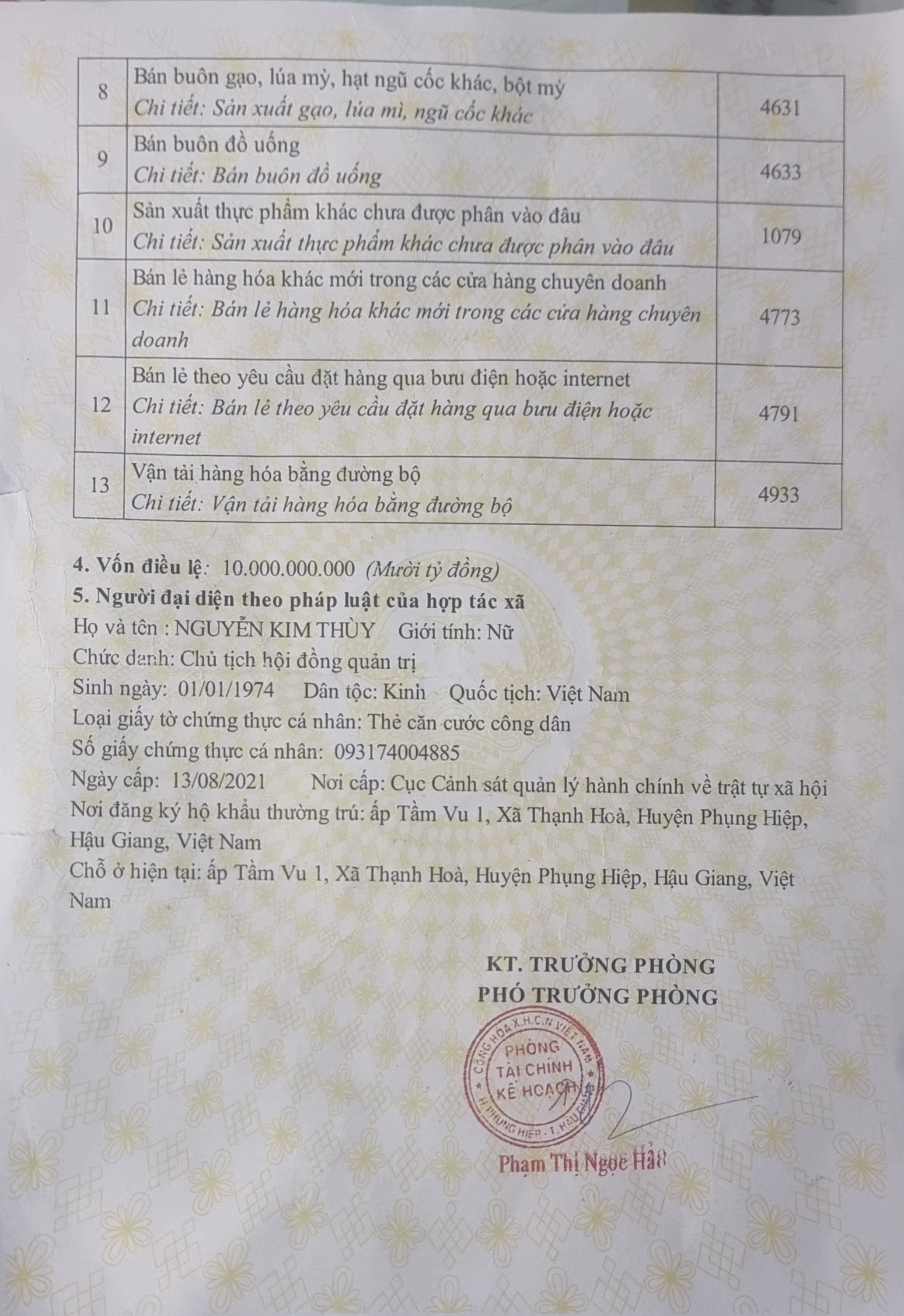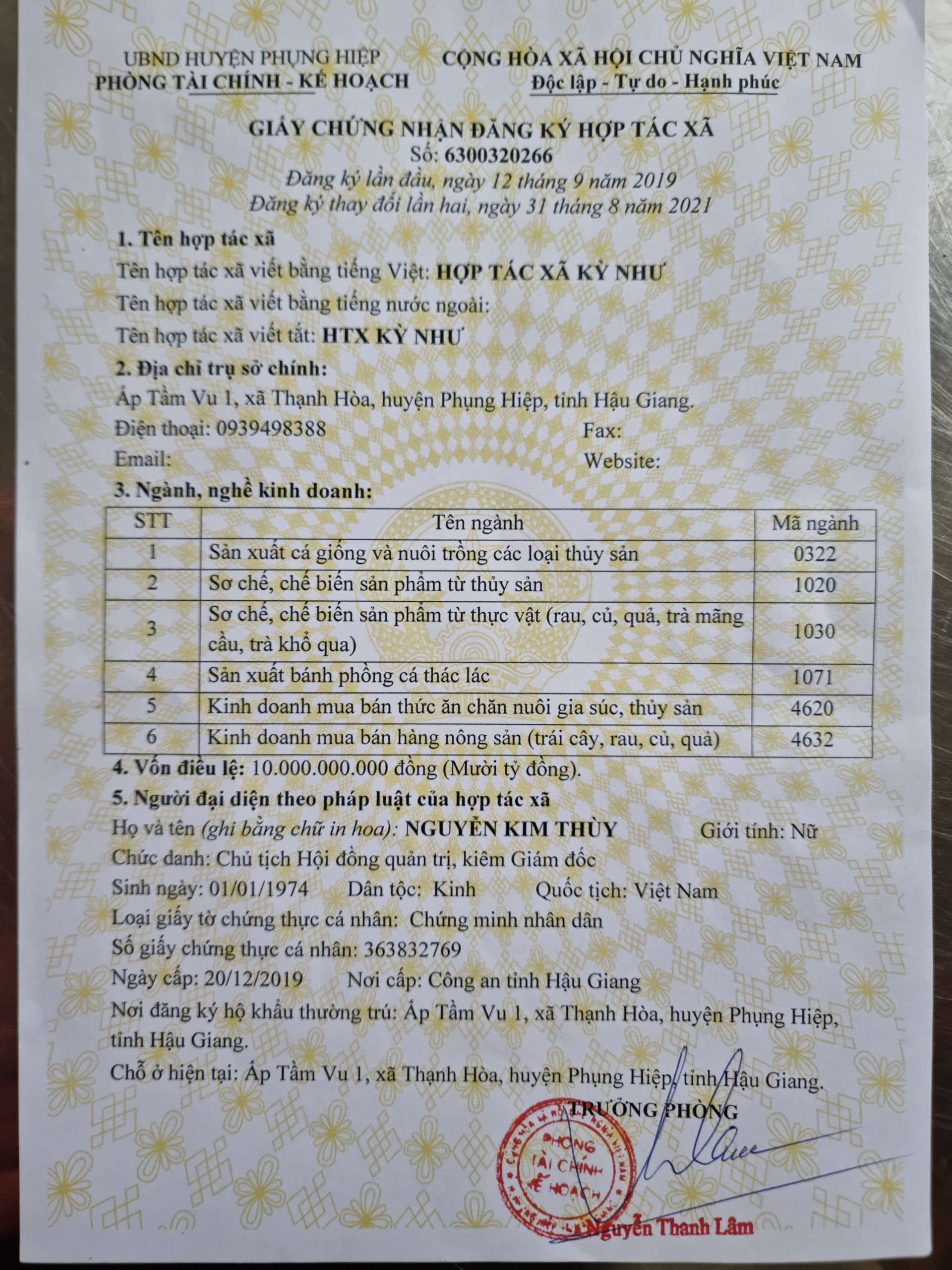Bộ Giấy Tờ - Chứng Nhận của Hợp Tác Xã Kỳ Như