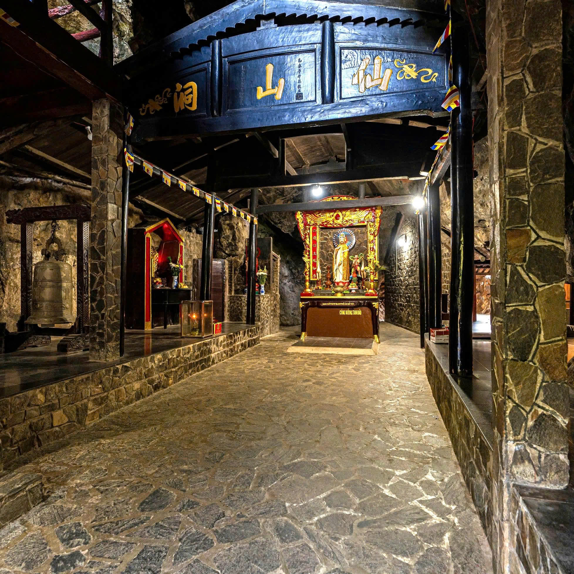 Không gian mát lành trong động đá hòa cùng tiếng chuông chùa ngân vang, tạo nên cảm giác linh thiêng, bình yên, một trải nghiệm khó quên trong hành trình khám phá Hà Tiên.