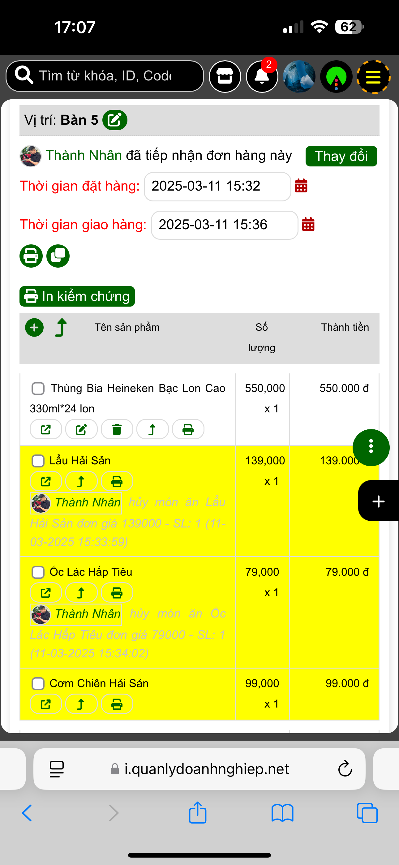 Tính đơn hàng cho hàng quán, cf, lên bill, in ấn bill, bán hàng offline