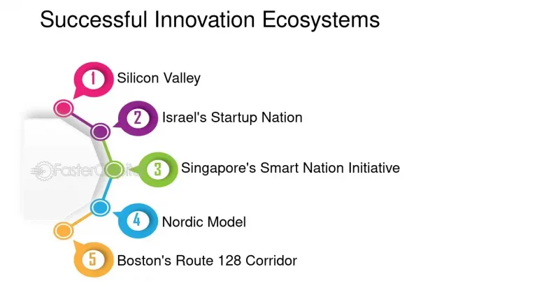3. Sáng kiến Quốc gia thông minh của Singapore: Cách tiếp cận của Singapore trong việc tạo ra hệ sinh thái đổi mới là thông qua Sáng kiến Quốc gia thông minh, nhằm mục đích tích hợp công nghệ vào mọi khía cạnh của cuộc sống. Cam kết của chính phủ đối với sáng kiến này thể hiện rõ qua khoản đầu tư vào cơ sở hạ tầng, giáo dục, nghiên cứu và phát triển. Sáng kiến này đã thu hút các công ty công nghệ khổng lồ toàn cầu và khuyến khích các công ty khởi nghiệp địa phương, tạo ra một hệ sinh thái năng động tận dụng công nghệ để cải thiện chất lượng cuộc sống cho người dân.