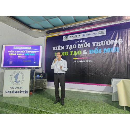Ông Nguyễn Minh Hải – Giám đốc Sở KH&CN Long An với bài chia sẻ “Những kết quả ban đầu và định hướng tương lai của Hệ sinh thái khởi nghiệp đổi mới sáng tạo Tỉnh Long An”.