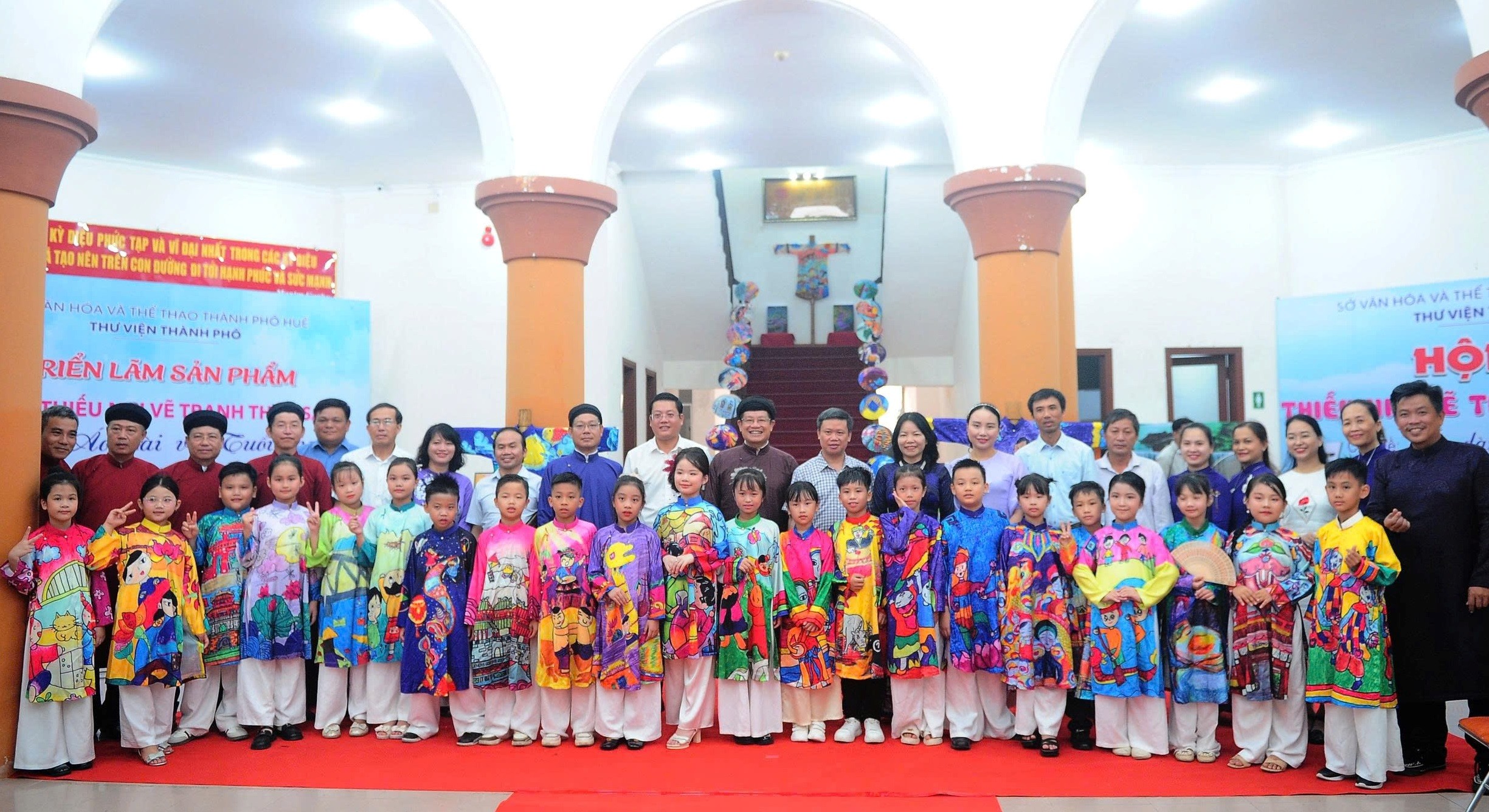 Sáng ngày 11/6, Thư viện thành phố Huế tổ chức khai mạc Triển lãm sản phẩm Hội thi thiếu nhi vẽ tranh theo sách với chủ đề “Áo dài và Tuổi thơ”. Đây là một hoạt động nổi bật trong khuôn khổ Tuần lễ Áo dài cộng đồng Huế năm 2025.