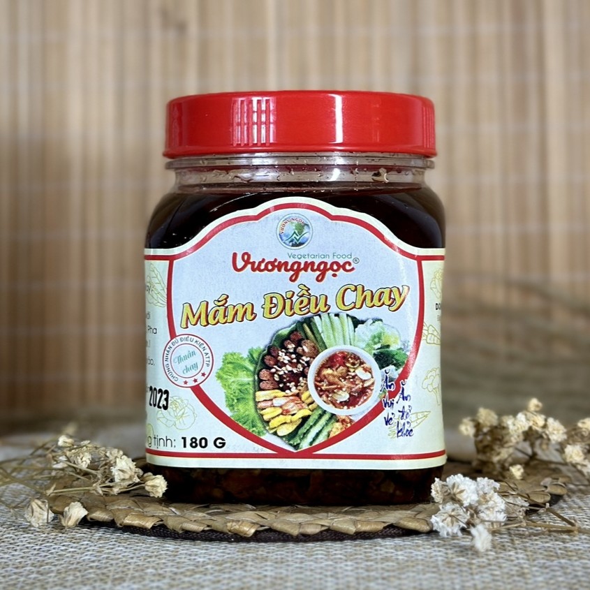 Với sứ mệnh mang đến cho thực khách những trải nghiệm ẩm thực chay độc đáo và tinh tế, nhà hàng Vương Ngọc Vegan đã cho ra đời Mắm Điều Chay không thể bỏ qua khi bạn muốn thưởng thức những món chay ngon, bổ dưỡng và an toàn. Nhà hàng Vương Ngọc Vegan sử dụng nguyên liệu tươi ngon, chất lượng cao, được chế biến theo các công thức đặc biệt, kết hợp giữa phong cách ẩm thực Việt Nam và Phương Tây. Bạn sẽ được thưởng thức những món chay đậm đà, hài hòa về màu sắc, hương vị và dinh dưỡng, có thể ăn kèm với các món như lẩu thái, cơm chiên, gỏi cuốn, bánh xèo, pizza, salad, bánh mì…