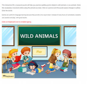 Trò chơi Interactive Crossword Puzzles là một trong những thể loại trò chơi luyện tập từ vựng rất hữu ích cho mọi lứa tuổi