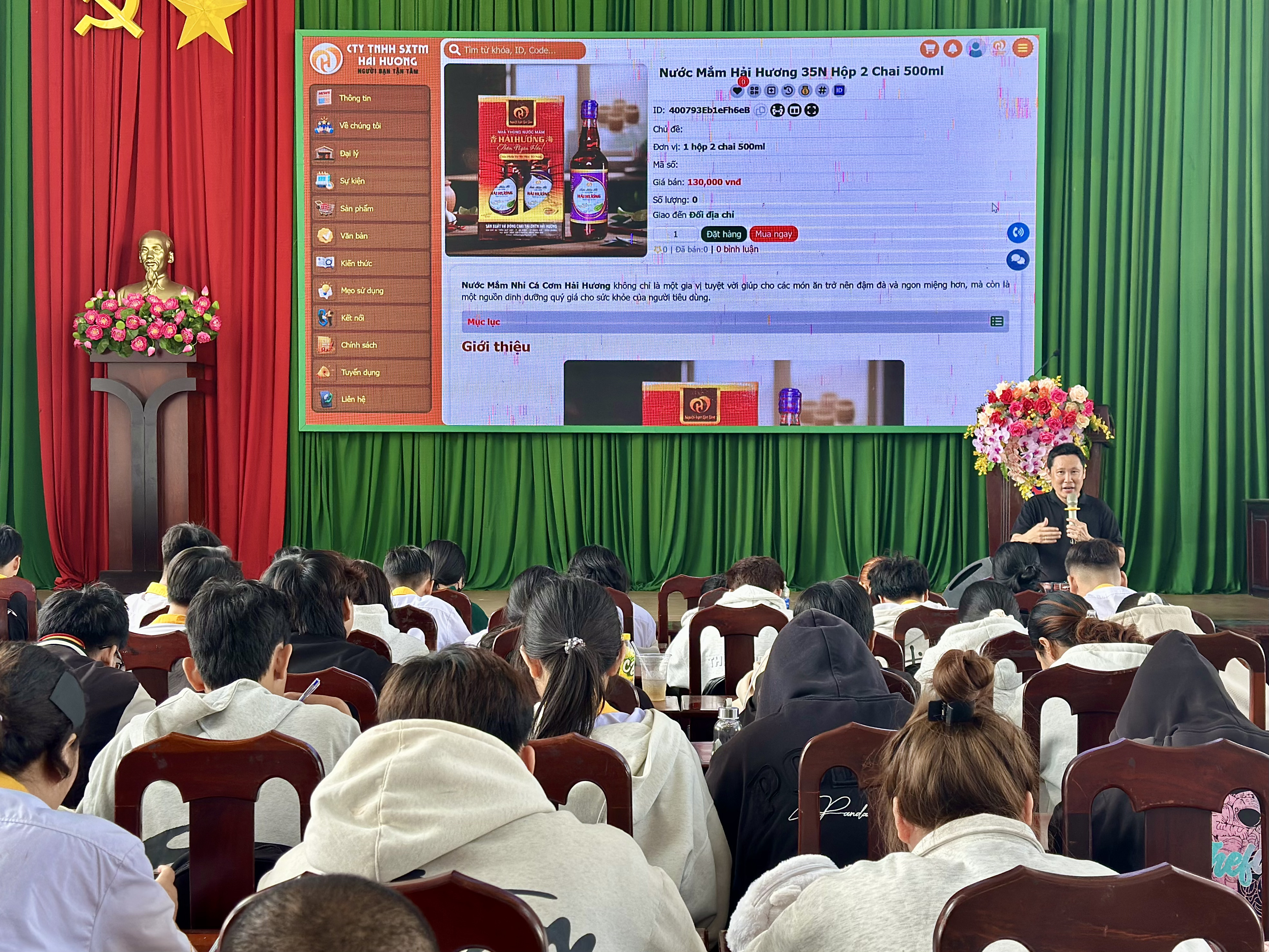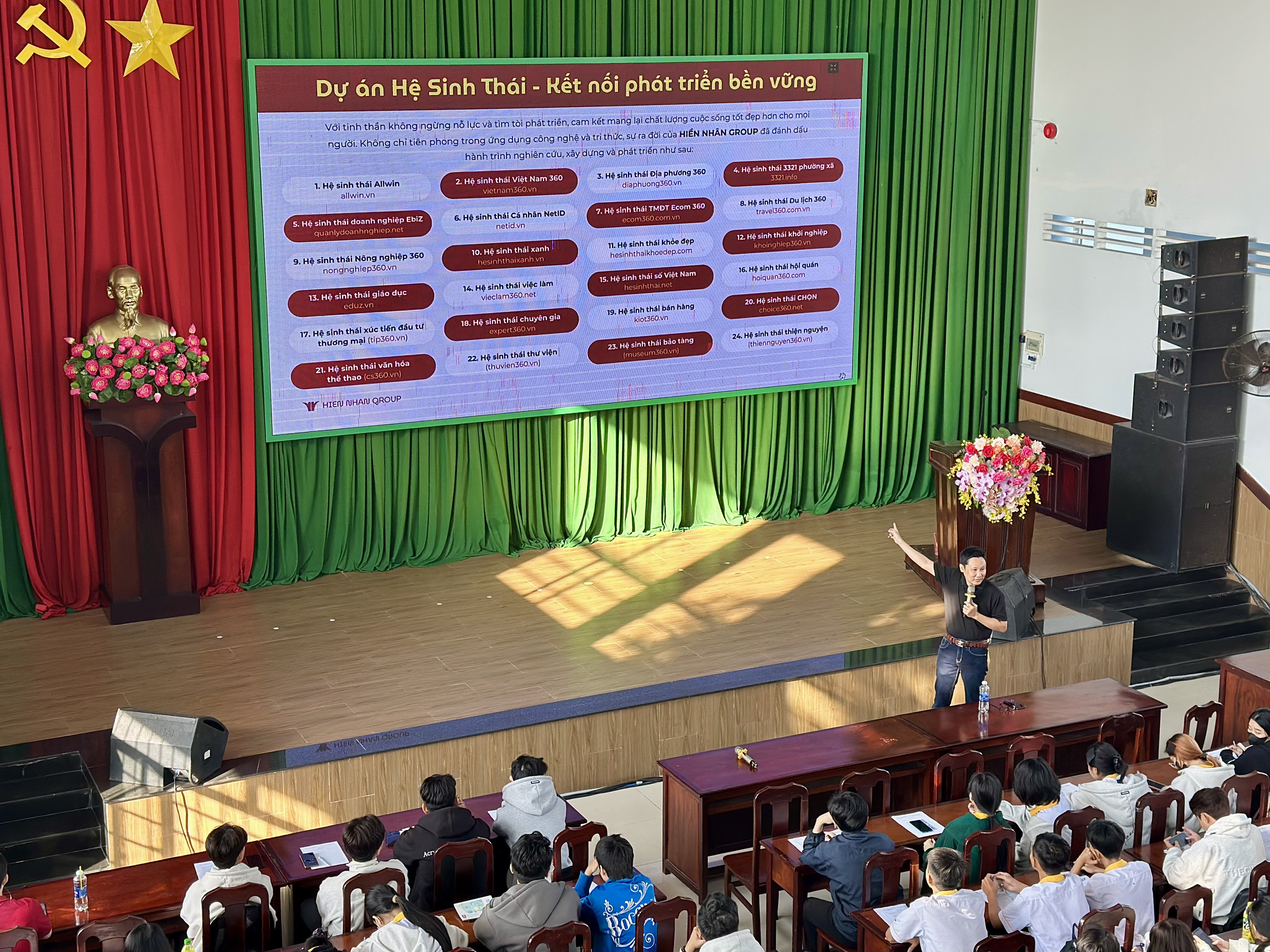 Ông Trương Vũ Linh đang giới thiệu về 24 hệ sinh thái của Hiền Nhân Group