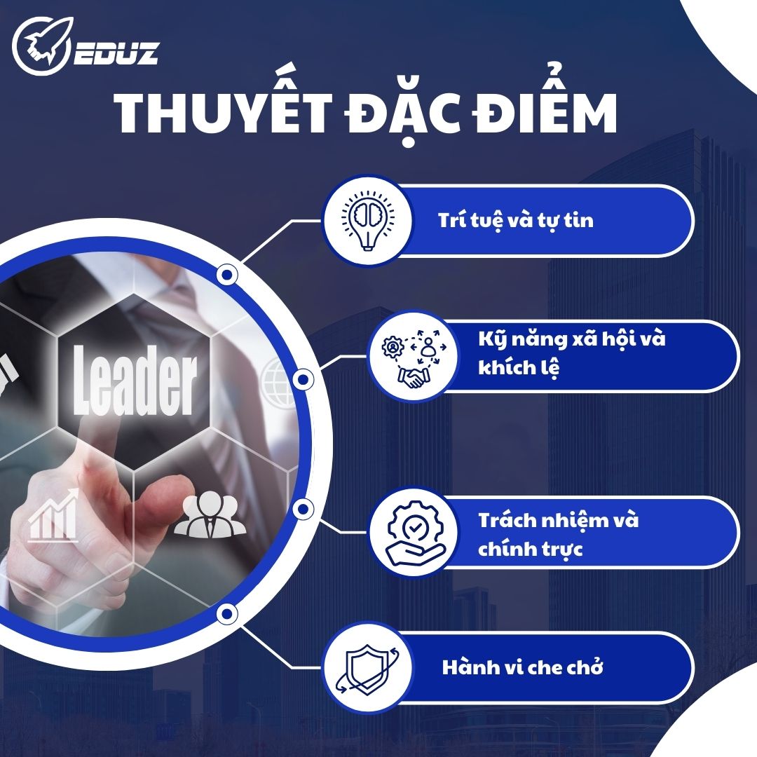 - Thuyết đặc điểm nhằm xác định các đặc điểm tính cách bẩm sinh phân biệt những nhà lãnh đạo và những người theo đuổi.