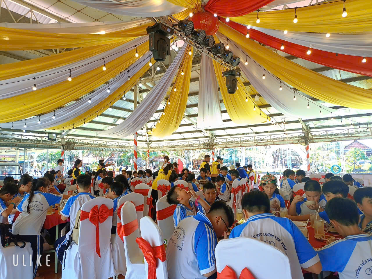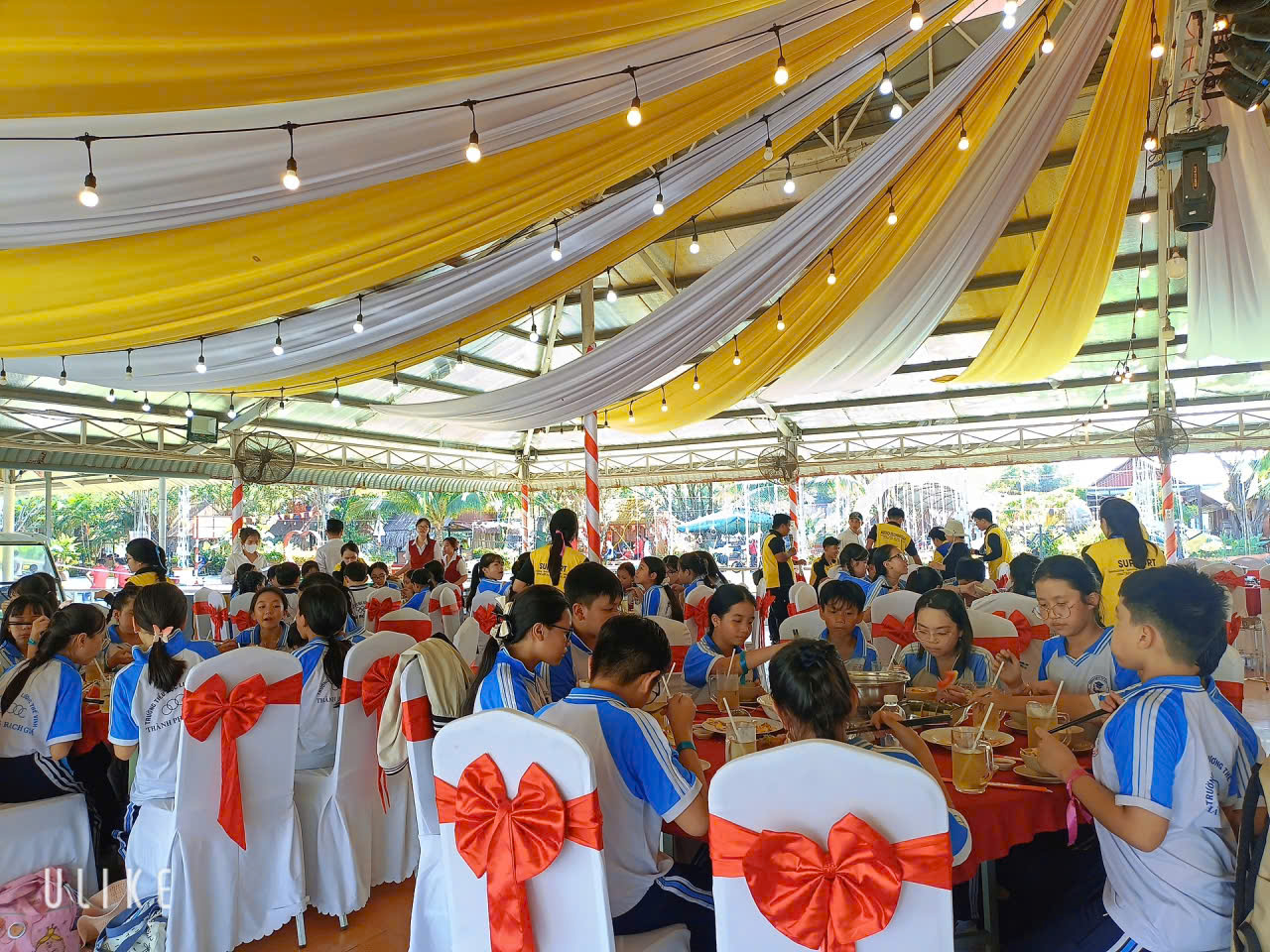 Bên cạnh các hoạt động chính, không gian ẩm thực tại đây cũng được chuẩn bị chu đáo trong suốt ngày diễn ra sự kiện. Các khu vực dùng bữa được bố trí thoáng mát, sạch sẽ, bữa ăn được sắp xếp phù hợp với từng đối tượng tham gia, đảm bảo vệ sinh và thuận tiện cho lịch trình chương trình. Việc tổ chức ăn uống ngay trong khuôn viên khu du lịch giúp các đoàn tiết kiệm thời gian, duy trì nhịp độ hoạt động và mang đến trải nghiệm trọn vẹn hơn.