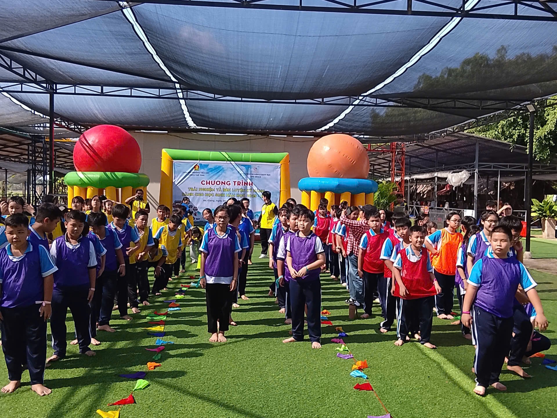 Trong không gian xanh mát, rộng rãi của Phú Điền, hàng trăm học sinh Trường Tiểu học Lương Thế Vinh đã hào hứng tham gia các hoạt động trải nghiệm và rèn luyện kỹ năng cho năm học 2025 – 2026. Các trò chơi vận động, thử thách đồng đội được thiết kế phù hợp với lứa tuổi, giúp các em phát triển thể chất, rèn luyện tinh thần kỷ luật, khả năng phối hợp và sự tự tin trong giao tiếp.