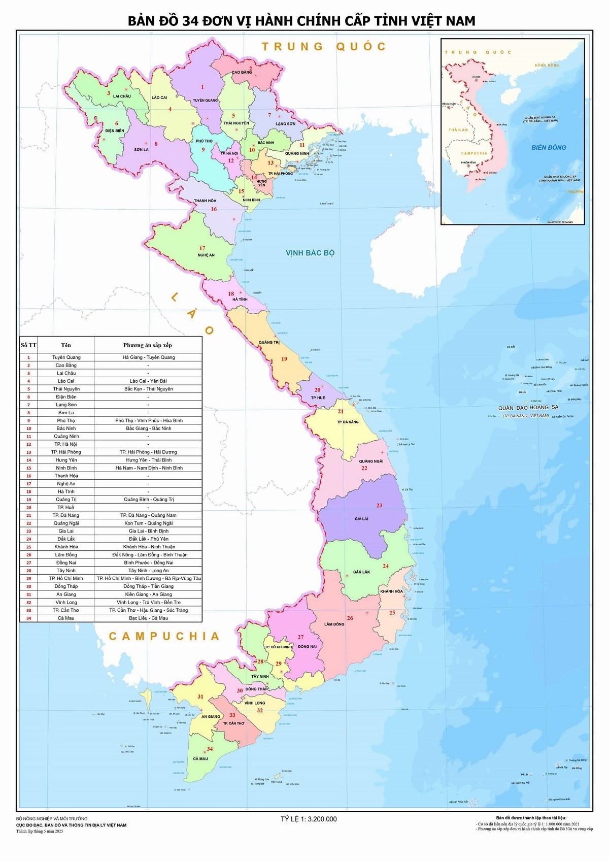 Bản đồ 34 đơn vị hành chính cấp tỉnh Việt Nam