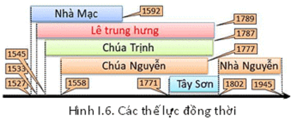 Thời Lê Trung Hưng, Nhà Mạc, chúa Trinh, Nguyễn, Nhà Tây Sơn, Nhà Nguyễn đều dùng danh xưng Đại Việt. Sơ đồ mô tả các thế lực đồng thời trên lãnh thổ Đại Việt (hình I.6).
