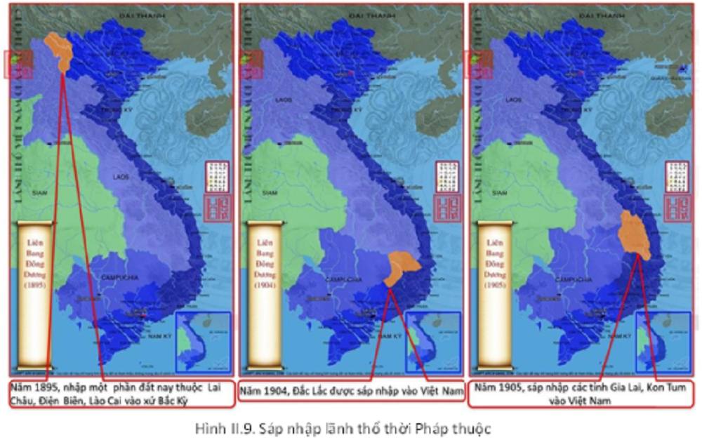 Chia cắt lãnh thổ thởi Pháp thuộc mô tả trên hình II.8