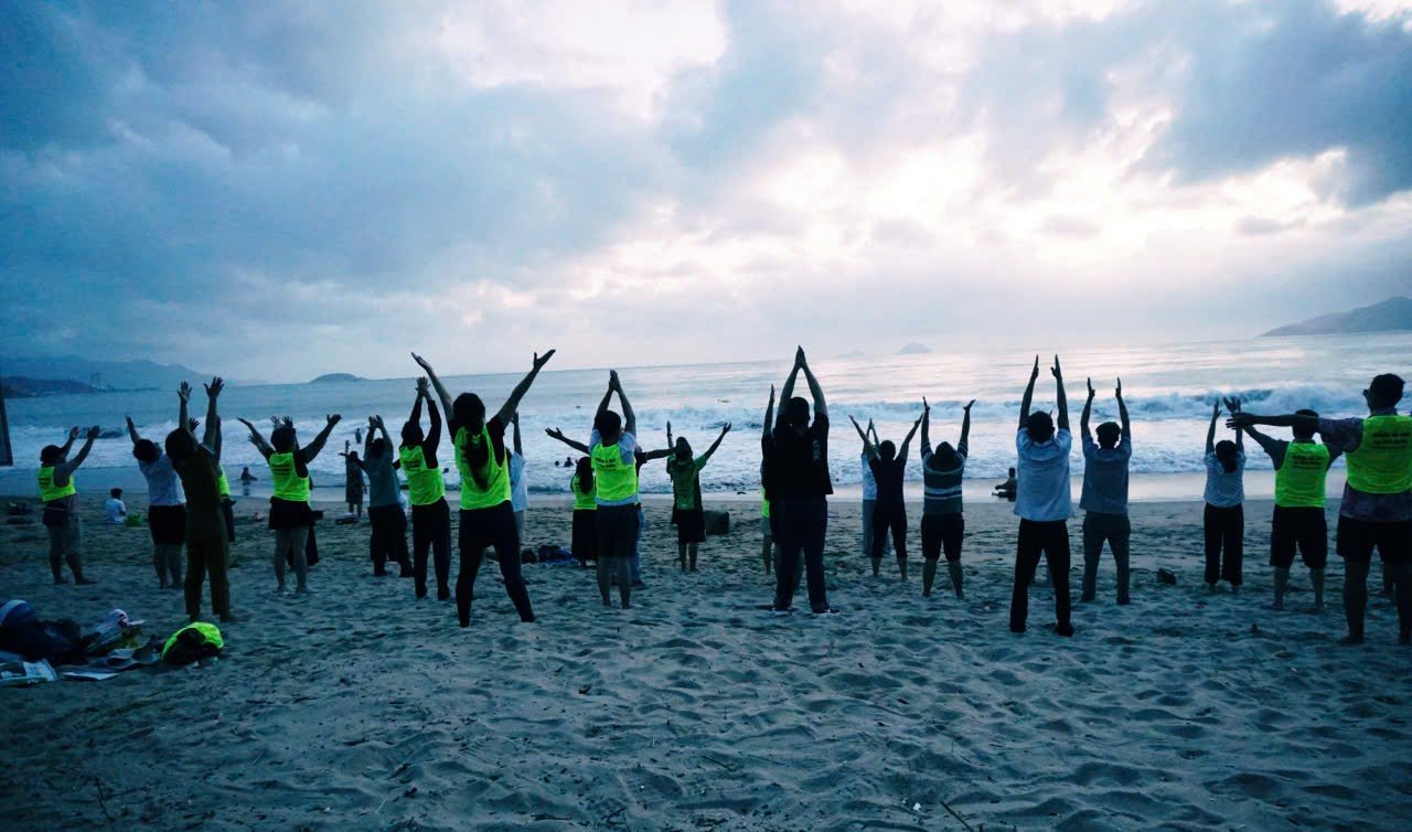NetZero Study Tour không tạo dấu ấn bằng những hoạt động lý thuyết, mà bằng những trải nghiệm đời thường: chào mặt trời, yoga trên bãi biển, chạm đất, chạm trời, lặng lẽ nhặt rác giữa thiên nhiên.