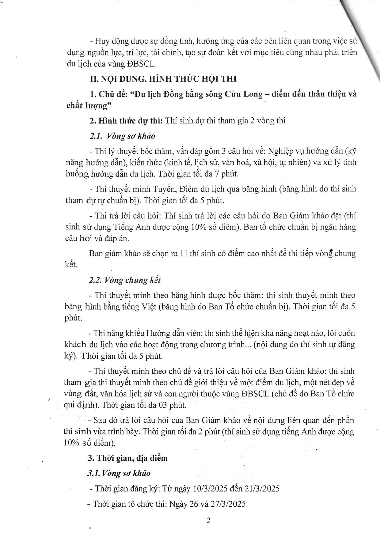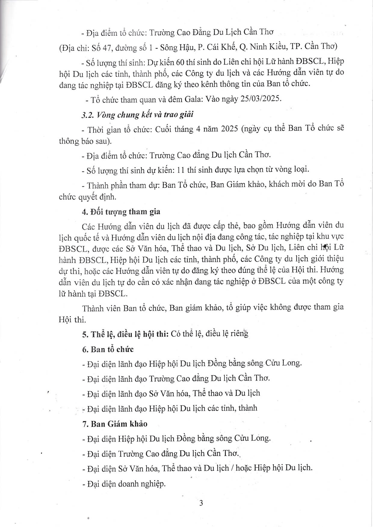 Kế Hoạch Phối Hợp Tổ Chức Hội Thi Hướng Dẫn Viên Du Lịch ĐBSCL, Lần Thứ Nhất – Năm 2025