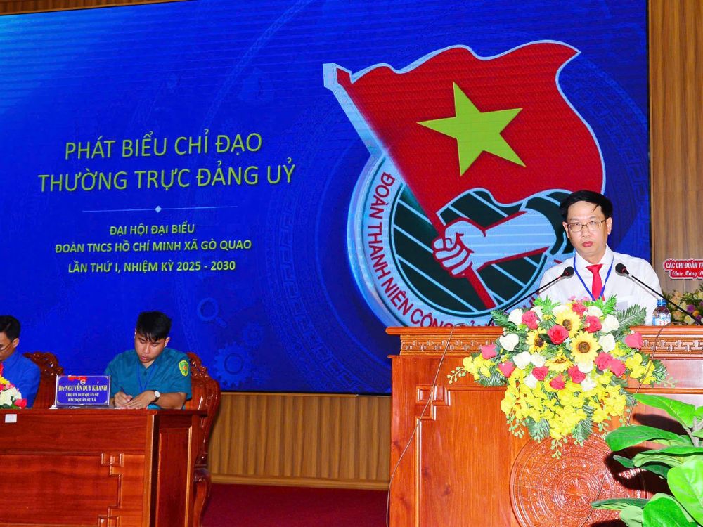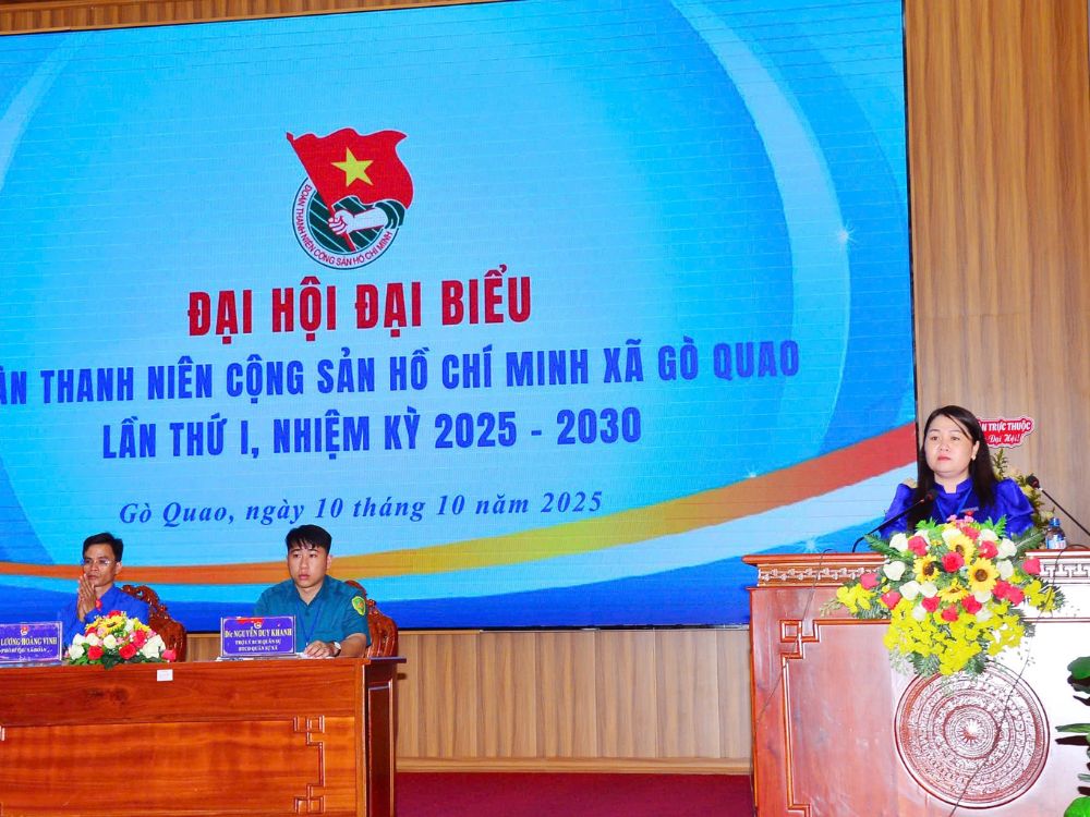 Ngày 10/10/2025, tại hội trường lớn đảng ủy xã, đoàn TNCS Hồ Chí Minh xã Gò Quao tổ chức đại hội đại biểu đoàn TNCS Hồ Chí Minh xã Gò Quao lần thứ I, nhiệm kỳ 2025 - 2030 với khẩu hiệu “Tuổi trẻ Gò Quao Tiên phong - Đoàn kết - Bản Lĩnh - Sáng tạo - Phát triển”.