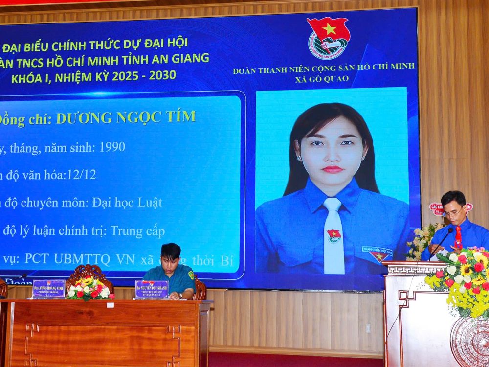 Tại đại hội đã công bố quyết định của ban thường vụ tỉnh đoàn An Giang chỉ định 23 đồng chí tham gia ban chấp hành đoàn xã nhiệm kỳ 2025 - 2030, ban thường vụ gồm 7 đồng chí, ủy ban kiểm tra đoàn xã gồm 5 đồng chí. Đồng chí Dương Ngọc Tím được chỉ định giữ chức bí thư đoàn xã và đồng chí Lương Hoàng Vinh - Phó bí thư thường trực, đồng chí Trần Minh Tiễn – Phó bí thư kiêm nhiệm. Công bố quyết định chỉ định đại biểu chính thức và dự khuyết dự đại hội cấp trên.