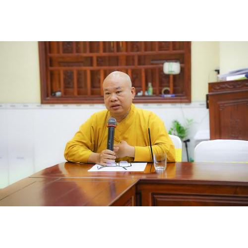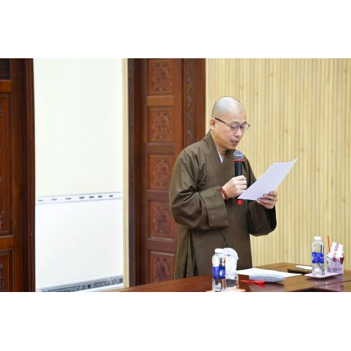Hòa thượng Thích Thiện Thống – Phó Chủ tịch HĐTS, Trưởng Ban Trị sự GHPGVN tỉnh An Giang chủ tọa phiên họp.