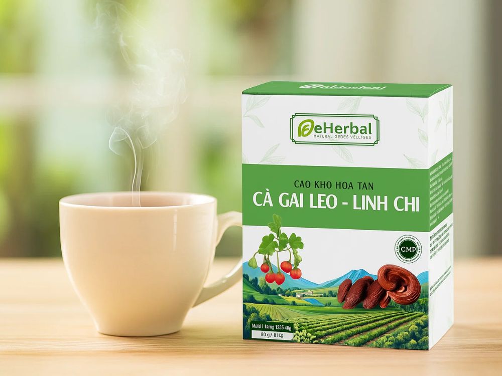 Cao khô hòa tan Cà gai leo Linh chi của Gold Herbal: Một giải pháp tiện lợi và hiệu quả để bảo vệ sức khỏe lá gan. Sản phẩm là sự kết hợp của hai loại thảo dược quý là Cà gai leo và Linh chi, được bào chế dưới dạng cao khô hòa tan tiện lợi. Với công nghệ chiết xuất hiện đại, sản phẩm không chỉ giữ trọn vẹn tinh chất của dược liệu mà còn giúp bạn dễ dàng bổ sung hàng ngày, hỗ trợ giải độc và tăng cường chức năng gan một cách tự nhiên.