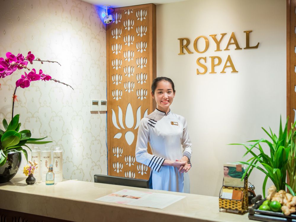 Royal Spa được nằm trong khách sạn đẳng cấp quốc tế 4 sao, là một nơi thư giãn với các liệu trình chăm sóc đa dạng và phong phú mà chúng tôi mang đến. Với chủ đạo dùng các nguyên vật liệu thiên nhiên như gỗ, đá, thảo mộc sẽ mang đến cho Qúy khách một cảm giác êm dịu và thư thái tuyệt đối ngay từ khi bước vào. Những cảm giác căng thẳng, mệt mỏi của cuộc sống hằng ngày bỗng chốc bị xua tan trong không gian tĩnh lặng và thư giãn cùa Royal Spa.