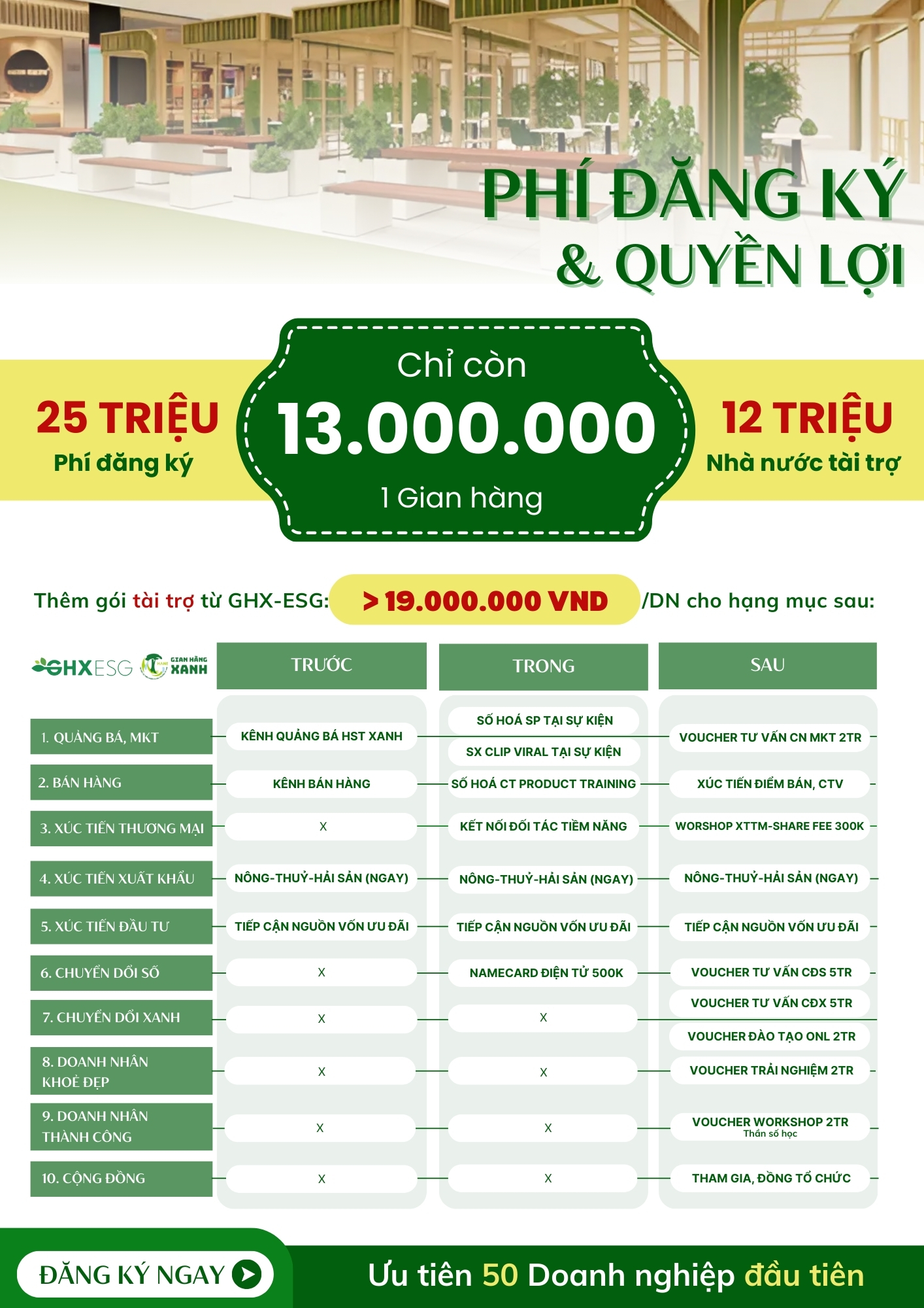 Ngoài ra, doanh nghiệp sẽ được hỗ trợ chuyển đổi số và phát triển thương mại điện tử thông qua việc xây dựng kênh bán hàng trực tuyến và tham gia đào tạo về ESG (Environmental, Social, and Governance).