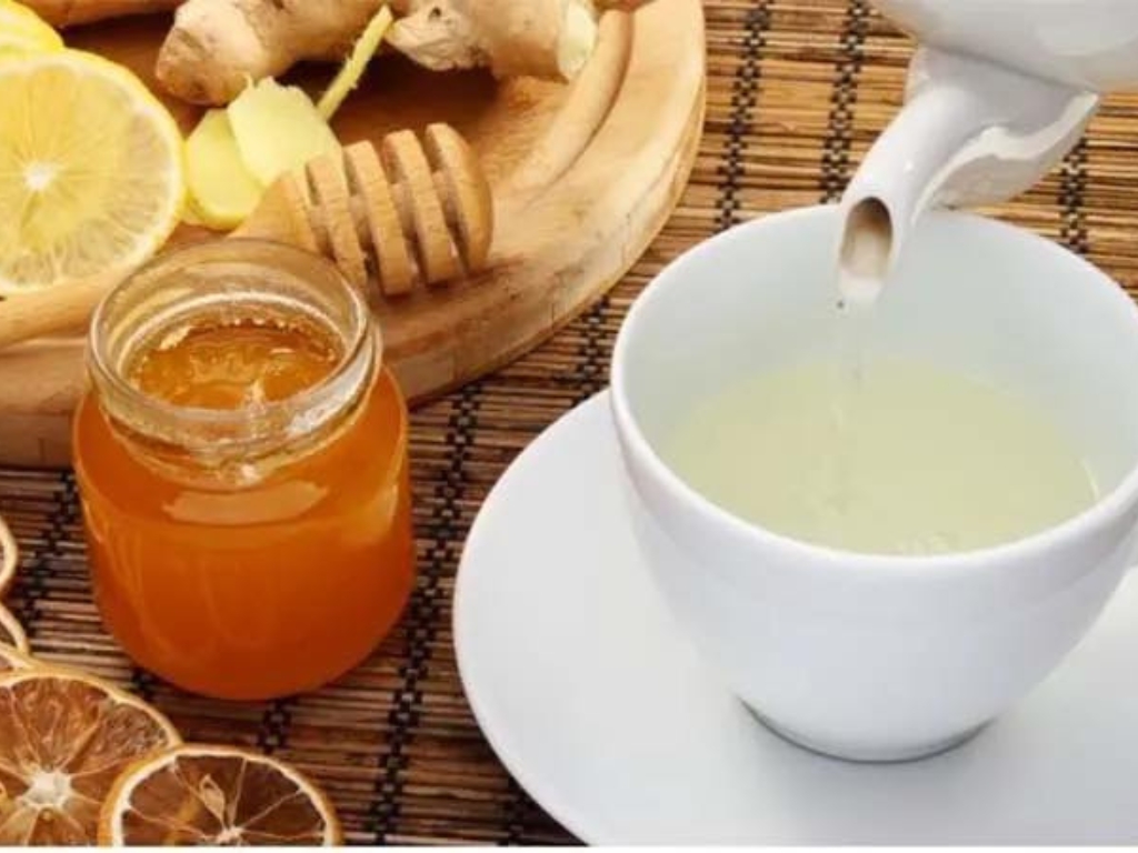 - Pha 1 muỗng canh mật ong + nước cốt ¼ quả chanh trong 120ml nước ấm.