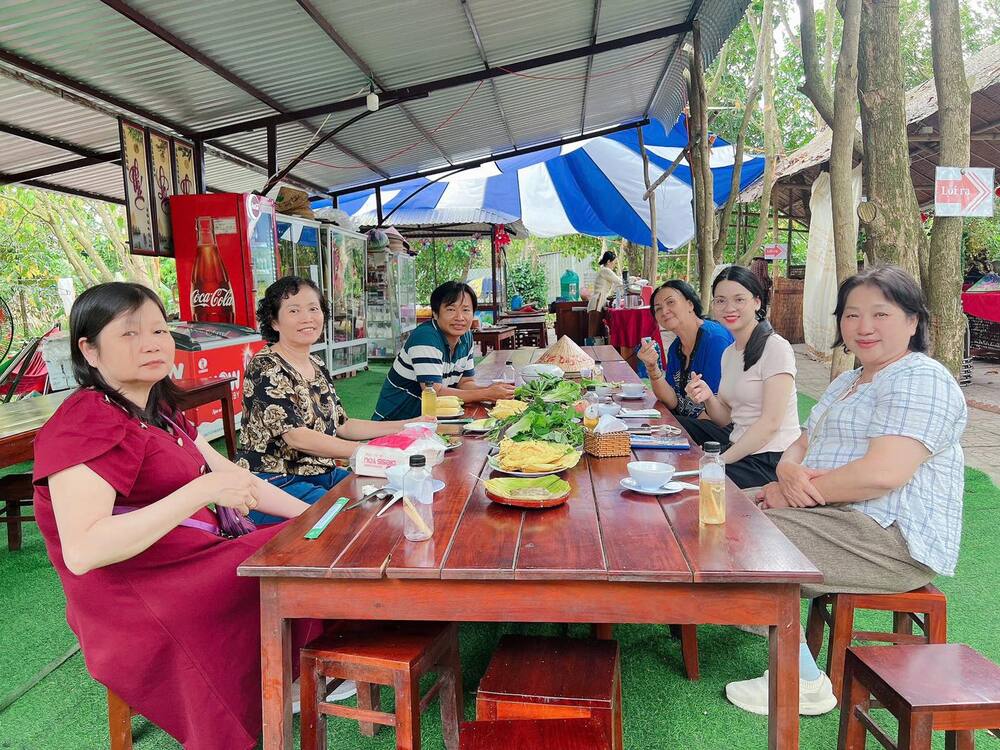 Ẩm thực tại Tuấn Tường không phải được phục vụ trong những nhà hàng sang trọng, mà là thưởng thức ngay trong không gian mộc mạc của làng quê, nơi có mái lá xum xuê, bàn cây giản dị bên cạnh con rạch nhỏ và vườn cây trái bạt ngàn. Chính khung cảnh ấy làm cho mỗi bữa ăn trở thành điểm nhấn trong hành trình khám phá, không đơn thuần là để lấp đầy dạ dày mà còn là cơ hội để cảm nhận sự hòa quyện với thiên nhiên.
