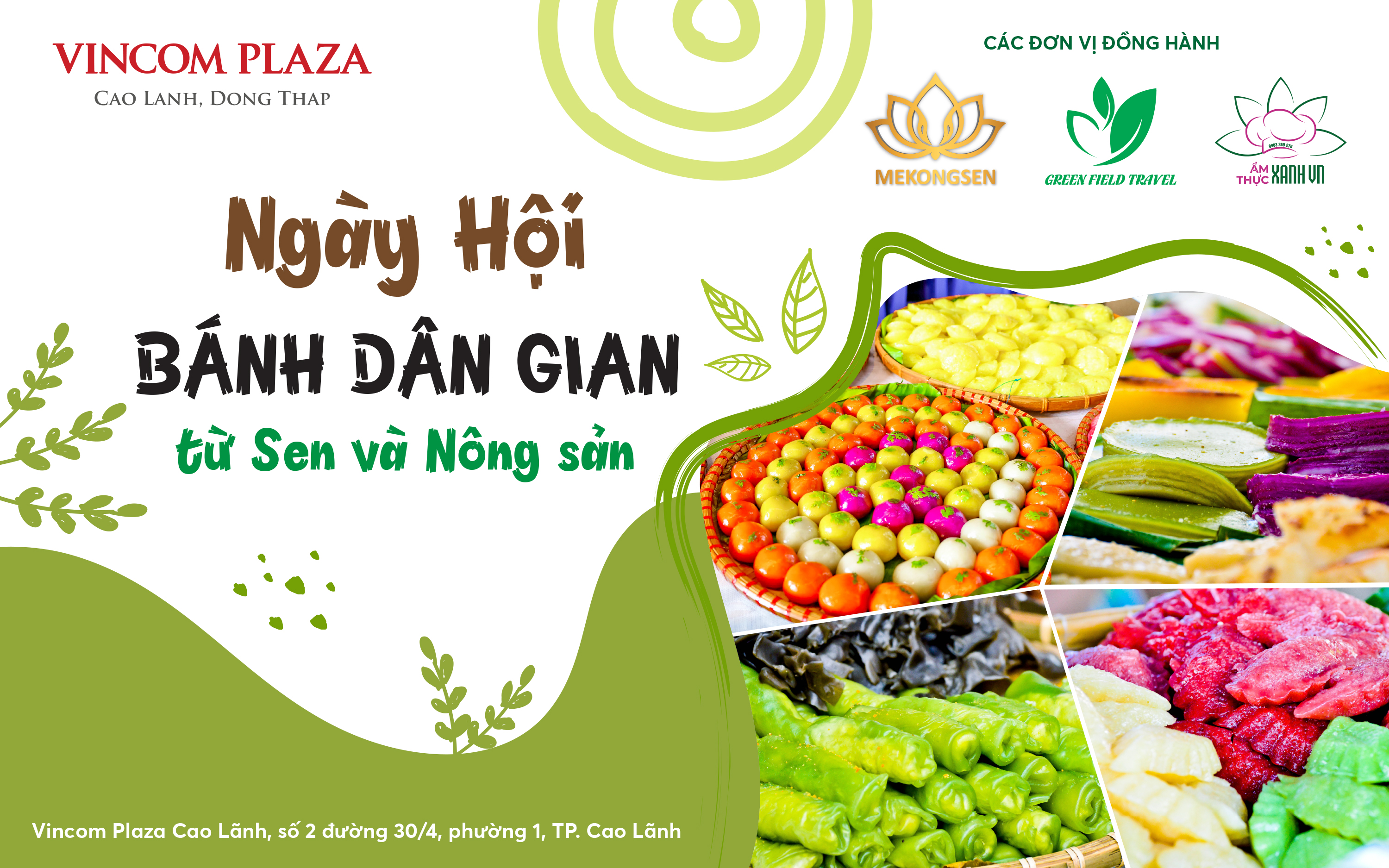 Với sự thành công của Ngày Hội Bánh Dân Gian Từ Sen và Nông Sản - Lần Thứ 1, Vincom Plaza Cao Lãnh kết hợp cùng Ẩm Thực Xanh VN, Hệ sinh thái Mekong Sen và Green Fleld Travel tổ chức Ngày Hội Bánh Dân Gian Từ Sen và Nông Sản - Lần Thứ 2 diễn ra từ ngày 7 đến 8/12/2024 tại Vincom Plaza Cao Lãnh, sự kiện này không chỉ đơn thuần là một ngày hội ẩm thực, mà còn là dịp để những người yêu thích văn hóa Việt Nam có cơ hội khám phá, trải nghiệm và thưởng thức những món bánh đặc sản mang đậm hương vị truyền thống.