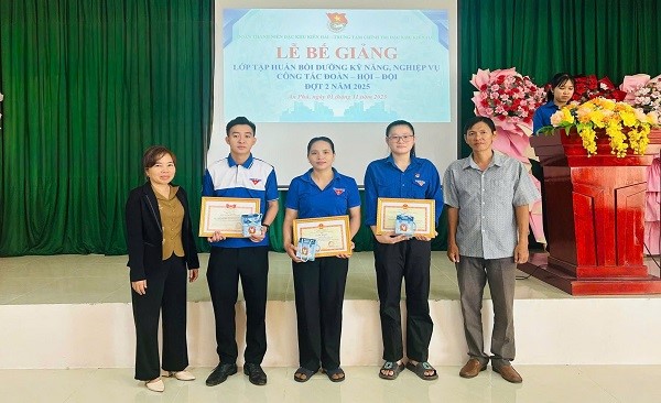 Kết thúc lớp tập huấn Ban tổ chức đã khen thưởng cho 03 học viên có thành tích xuất sắc trong lớp tập huấn kỹ năng, nghiệp vụ công tác Đoàn - Hội - Đội đợt 2 năm 2025.
