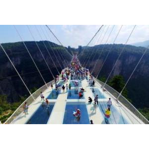 - Tham quan Cầu Kính “Cầu Pha Lê” tại “Đại Hiệp Cốc” với cây cầu có đáy kính rộng 6m, dài 430m và độ cao 300m thật hùng vĩ.
