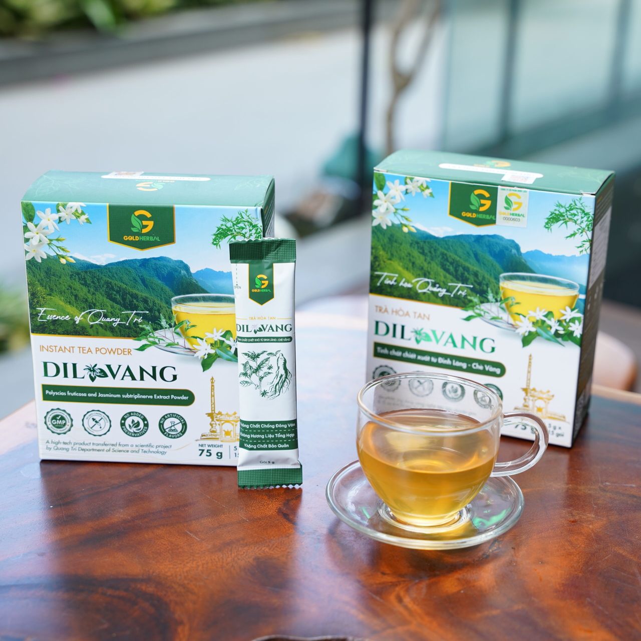 Không dừng lại đó, trà hòa tan DILVANG là một trong những sản phẩm của Gold Herbal ứng dụng công nghệ tiên tiến được chuyển giao từ đề tài khoa học của Sở khoa học và công nghệ Quảng Trị, nhằm tạo ra các sản phẩm dược liệu đạt chuẩn GMP mang giá trị cao, hiệu quả vượt trội, đáp ứng khẩu vị và nhu cầu của người tiêu dùng.( theo báo Quảng Trị)