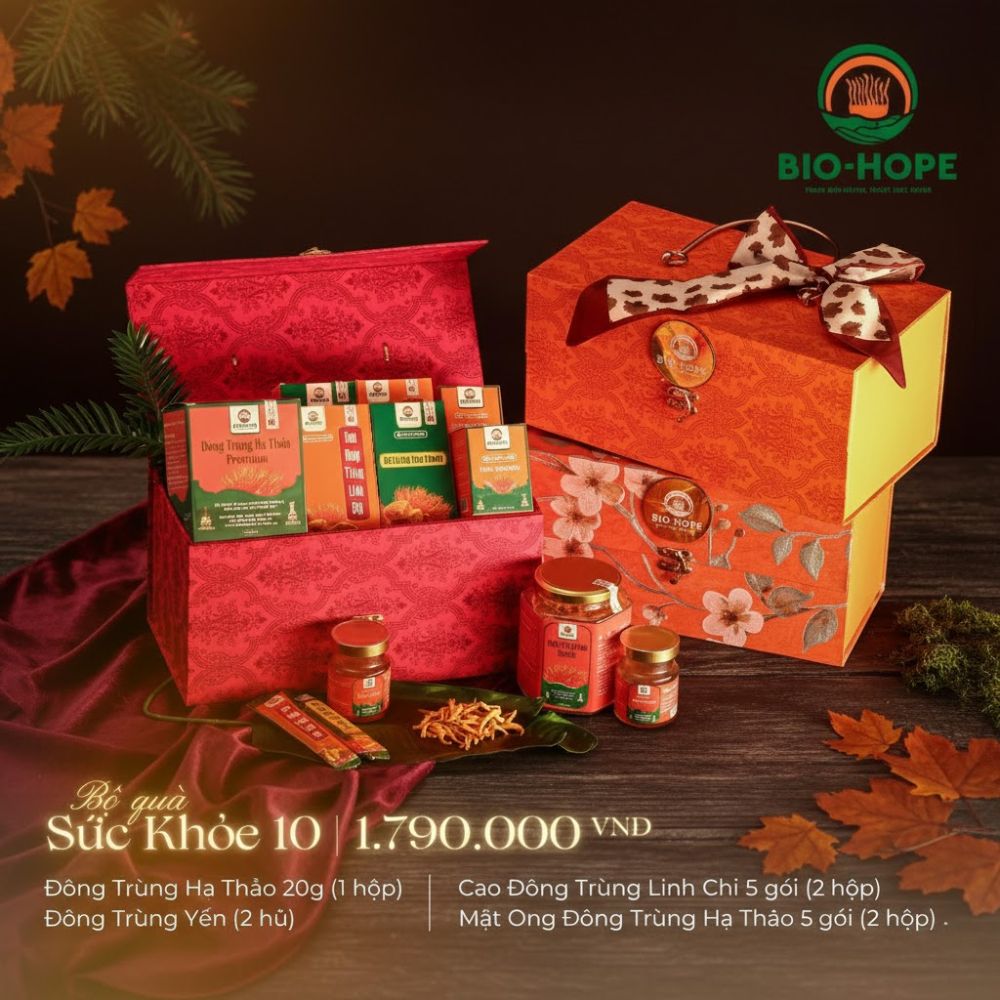 • Bộ Quà Sức Khỏe 10 là set quà Tết chăm sóc sức khỏe cao cấp của Bio Hope, kết hợp các sản phẩm thiên nhiên quý.