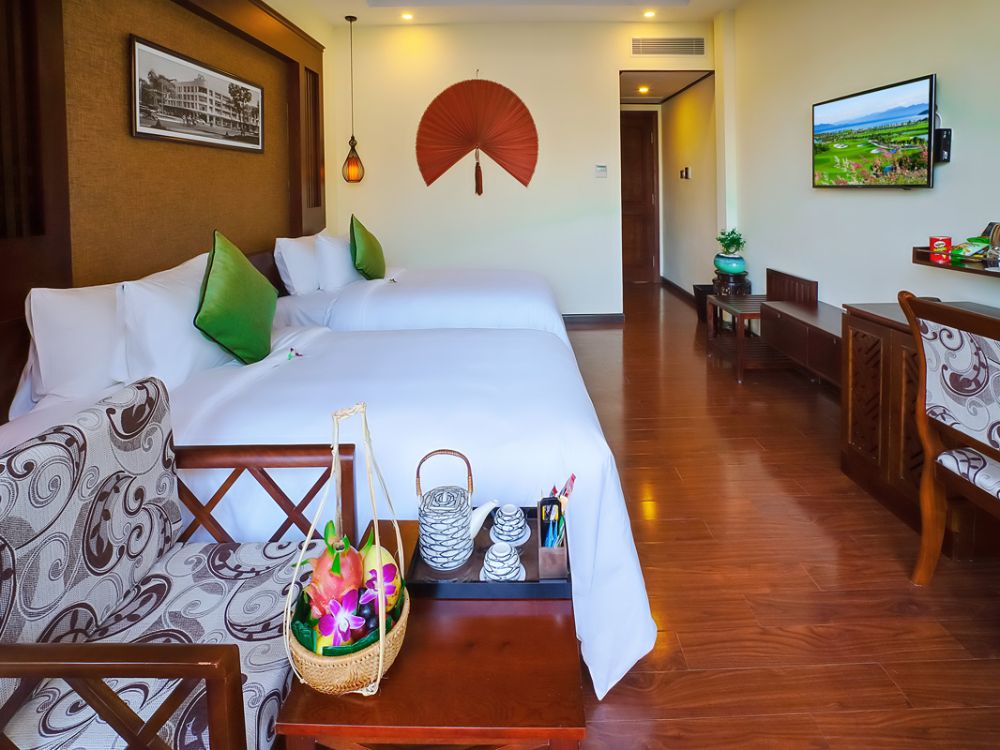 - Phòng Superior hướng vườn: với hướng nhìn từ tầng 2, được trang bị với các tiện nghi hiện đại mang phong cách Việt Nam truyền thống.