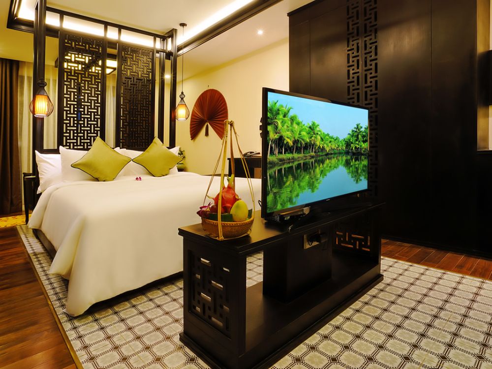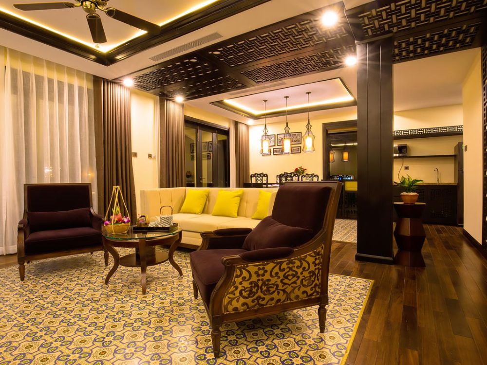 - Biệt thự 3 phòng ngủ ven sông: nằm ngay bên bờ sông thơ mộng với hồ bơi trong nhà và phòng bếp sang trọng, loại phòng biệt thự này vừa mang nét hiện đạitừ các trang thiết bị nội thất cao cấp, vừa phảng phất phong cách nghệ thuật truyền thống Việt Nam. Bạn có thể thoải mái tận hưởng không gian xanh nhiệt đới và những cây cảnh nghệ thuật đốc đáo từ ban công phòng mình. Đây sẽ là sự lựa chọn hoàn hảo cho những kì nghỉ dưỡng ngắn ngày hay dài ngày của bạn.