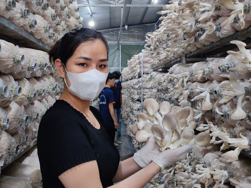 Với hệ thống trang trại nuôi trồng nấm hiện đại, đảm bảo thoáng mát, nhưng vẫn hạn chế được gió lùa và ánh nắng trực tiếp cho nấm. Kệ phôi được bố trí hợp lí để nấm có không gian thở và người chăm sóc, thu hái, tưới tiêu dễ dàng, đảm bảo năng suất cao, thu hoạch nhanh.