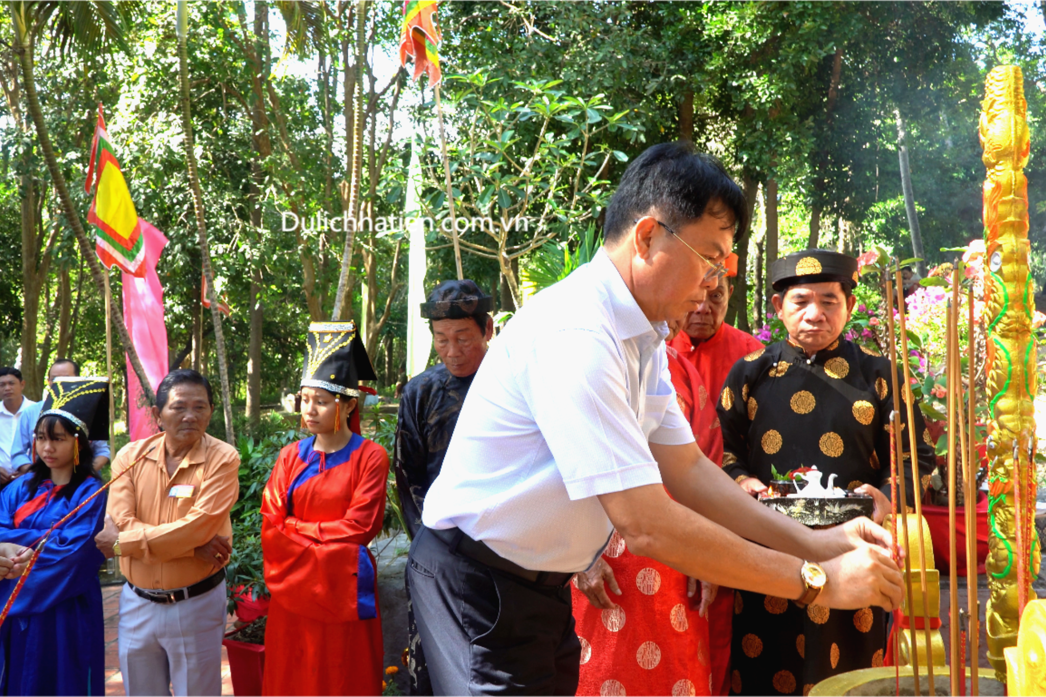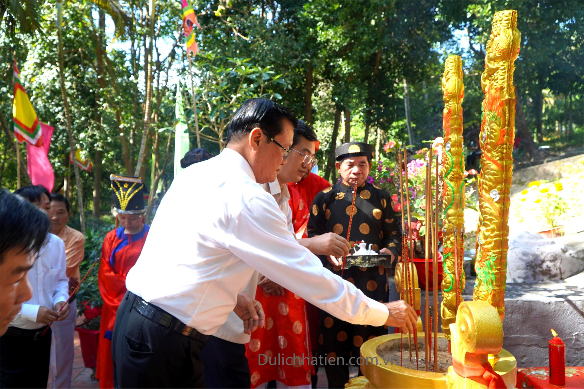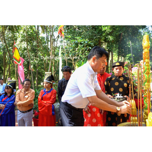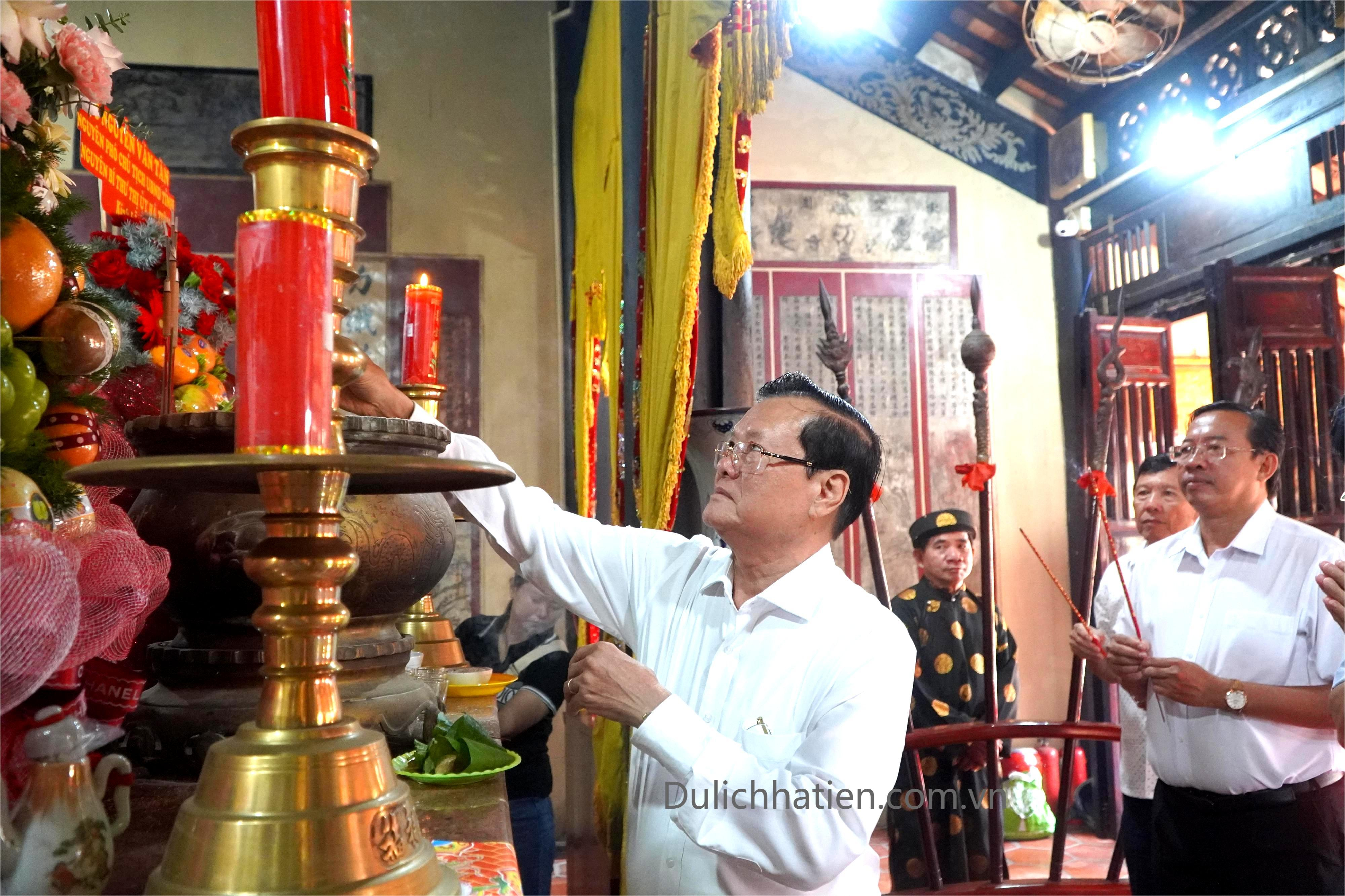 Trong không khí trang nghiêm, các đại biểu thành kính dâng hương, dâng hoa tưởng nhớ Ông Mạc Thiên Tích, bậc danh nhân văn võ song toàn, người sáng lập Tao đàn Chiêu Anh Các, góp phần đưa Hà Tiên trở thành trung tâm văn hóa, kinh tế thịnh vượng bậc nhất phương Nam thế kỷ XVIII.