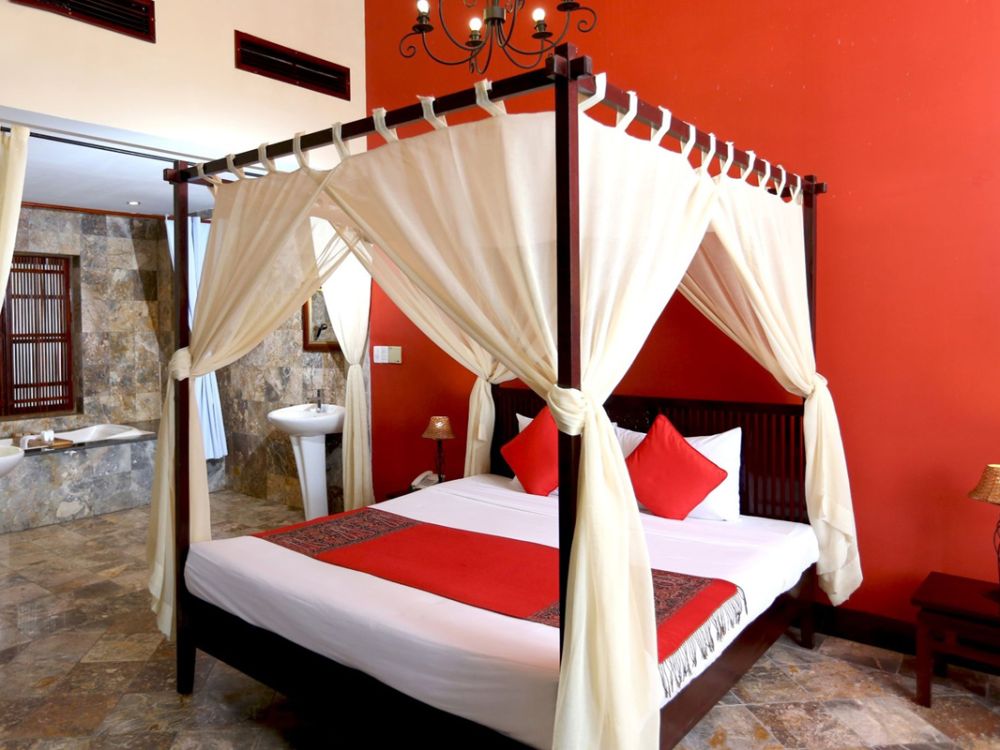 Chúng tôi chỉ có duy nhất 2 căn honeymoon villa xinh đẹp dành cho những cặp đôi mới cưới. Mỗi căn đều có hồ bơi riêng và sân vườn lãng mạn, rất gần với nhà hàng chín, hồ bơi beach pool và bãi biển đảm bảo cho quý khách có một kỳ trăng mật tuyệt vời nhất. Nội thất của villa honeymoon được chon lọc kỹ càng với chất lượng và kiểu dáng đẹp nhất: giường ngủ kiểu hoàng gia ấm cúm, bồn tắm lớn bằng đá cẩm thạch nguyên khối đủ rộng cho 2 người, hồ bơi lát đá 25m2, vị trí villa tách biệt tạo không gian riêng tư tuyệt đối