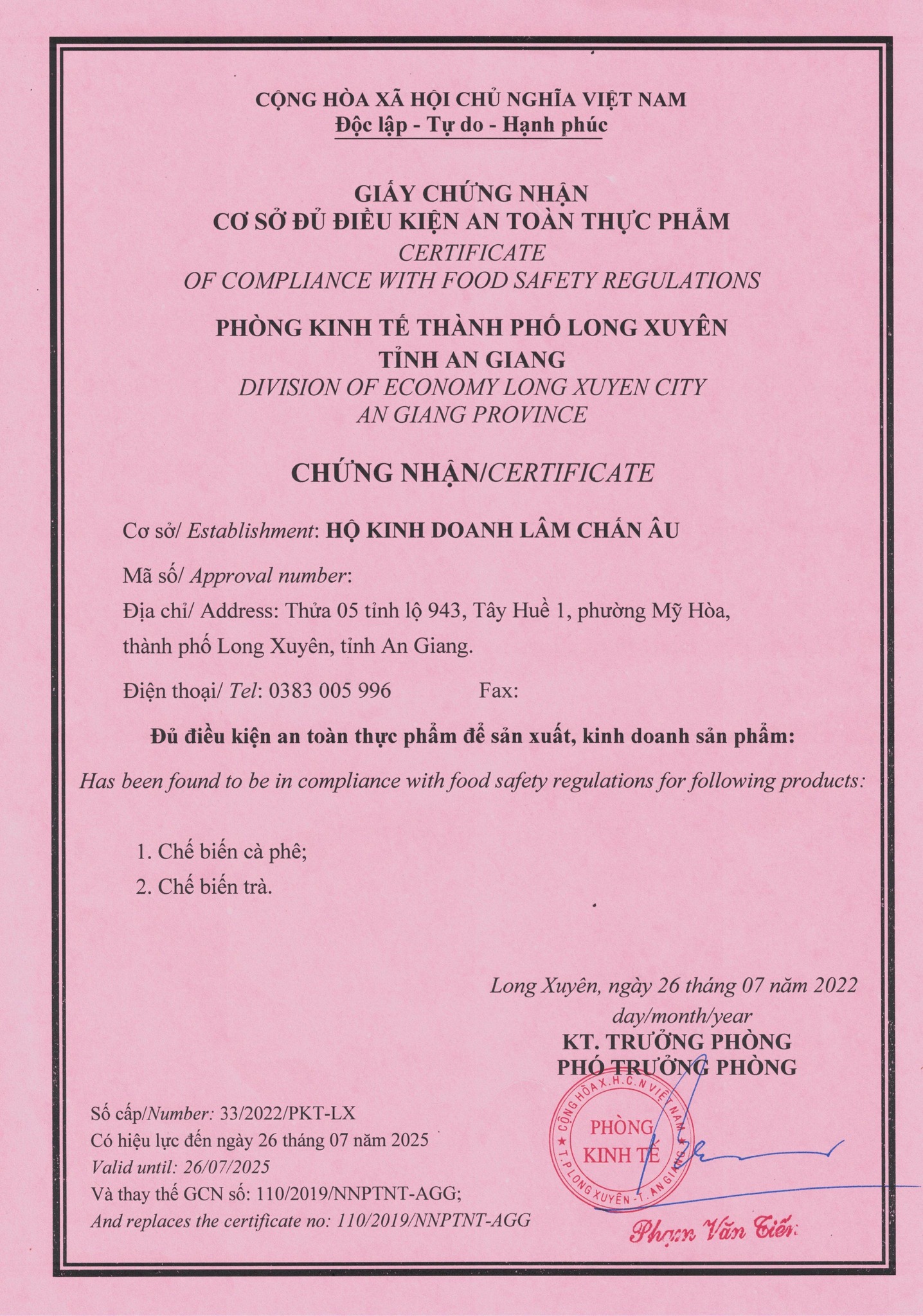 - Tên quốc tế: LAM CHAN AU TEA AND COFFEE COMPANY LIMITED
