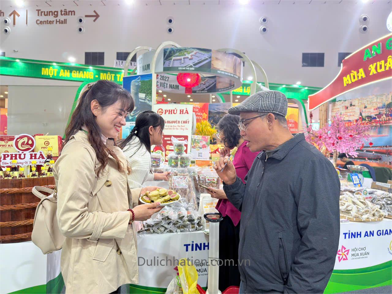 Trong khuôn khổ hội chợ, phường Hà Tiên tham gia gian hàng chung của tỉnh An Giang, giới thiệu và quảng bá hình ảnh du lịch địa phương thông qua các ấn phẩm, bản đồ, tranh ảnh về cảnh quan, con người và nét văn hóa đặc trưng của vùng đất Hà Tiên.